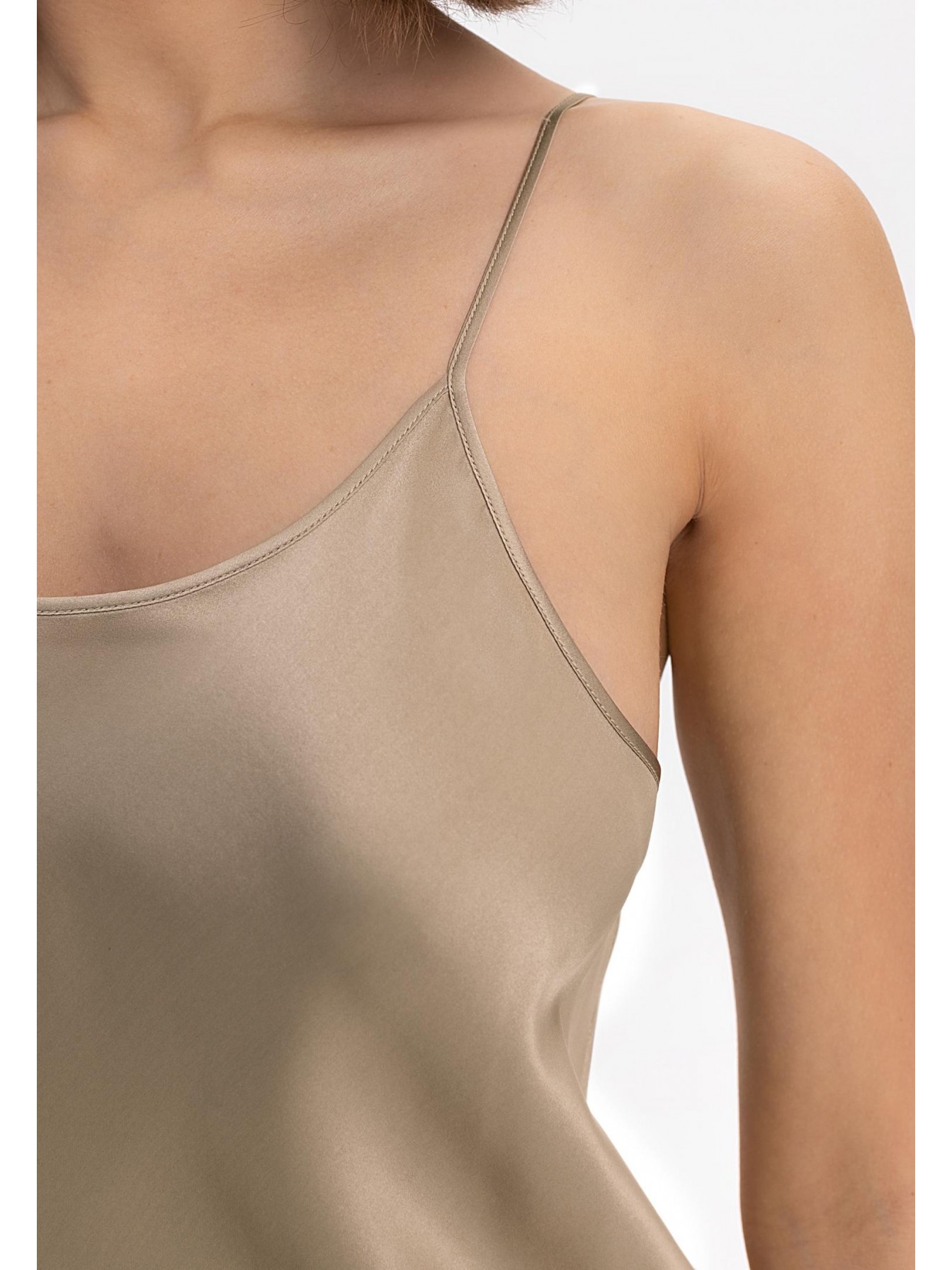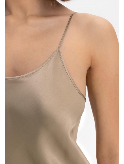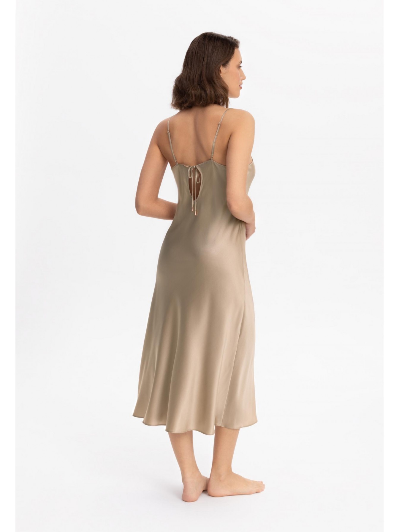 Шелковая ночная сорочка полуприлегающего силуэта на тонких регулируемых бретелях. Длина чуть ниже уровня колен. Открытая спинка с вырезом.