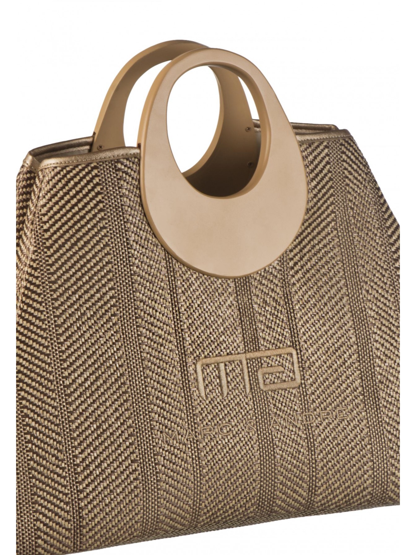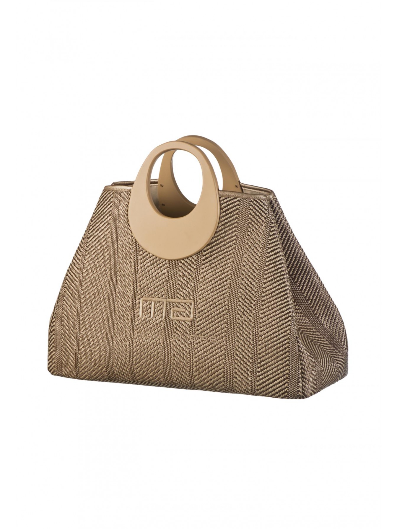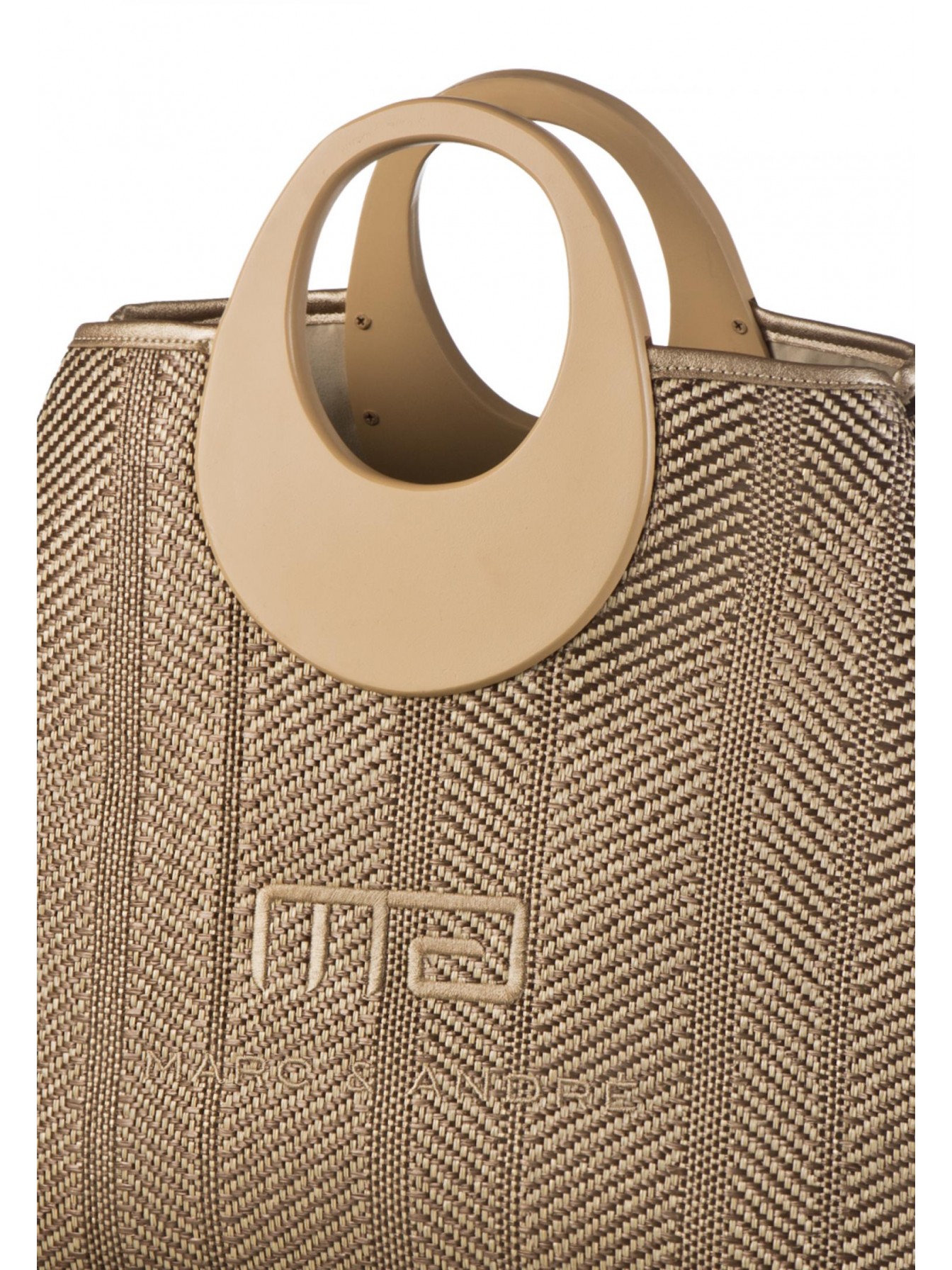 Пляжная сумка с логотипом Marc & André. Выполнена из фактурного материала в натуральном оттенке. Акцентные ручки контрастного цвета.
