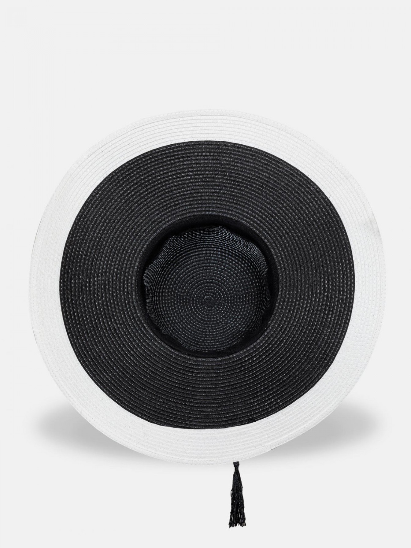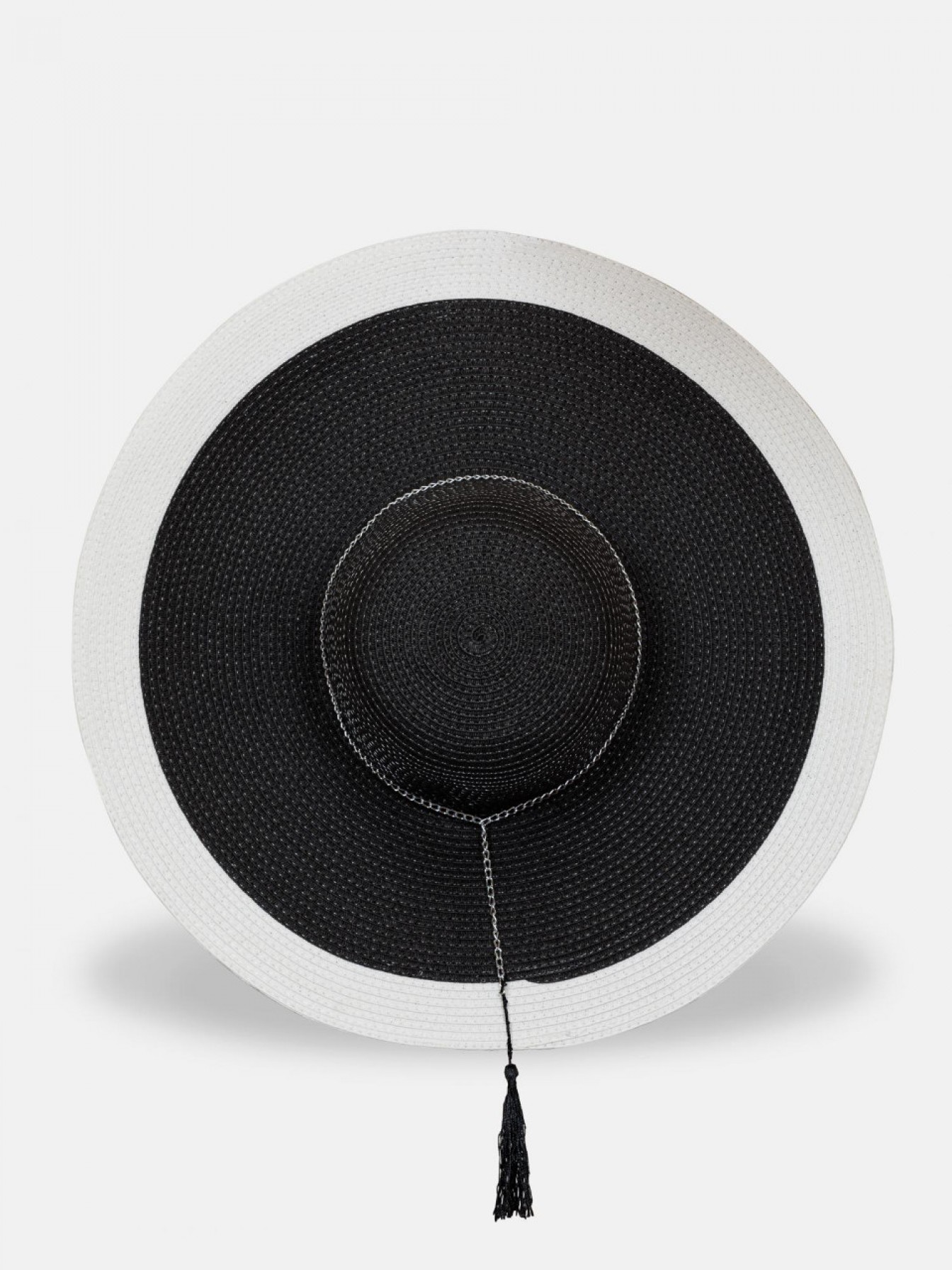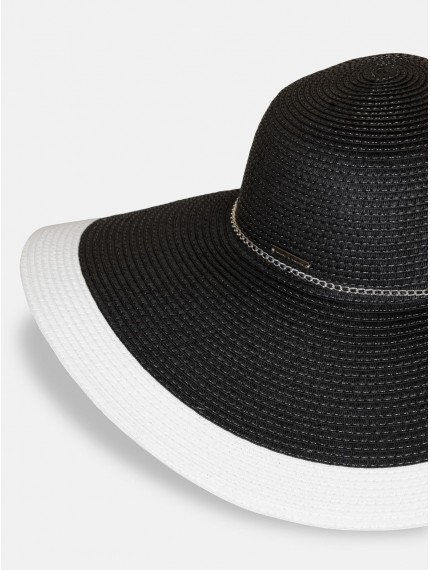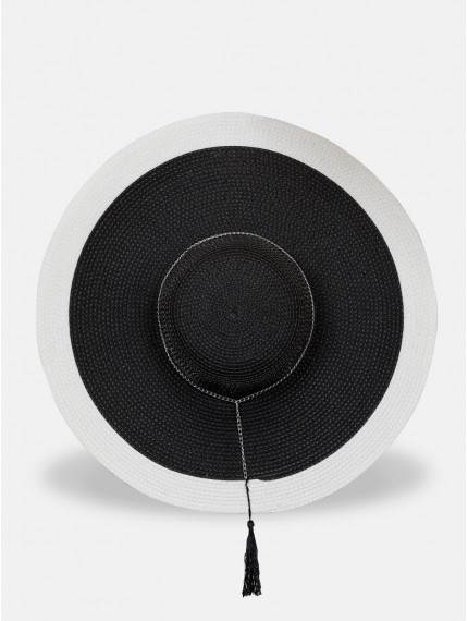 Пляжная шляпа черного цвета с белыми краями.