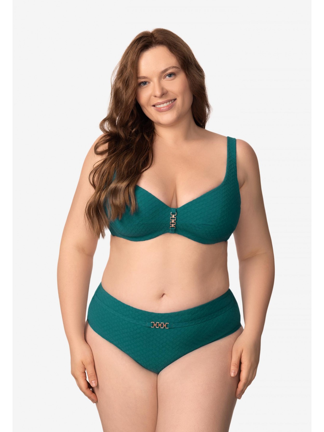 Брифы со средней линией талии. На передней детали декоративный пояс с аксессуаром.