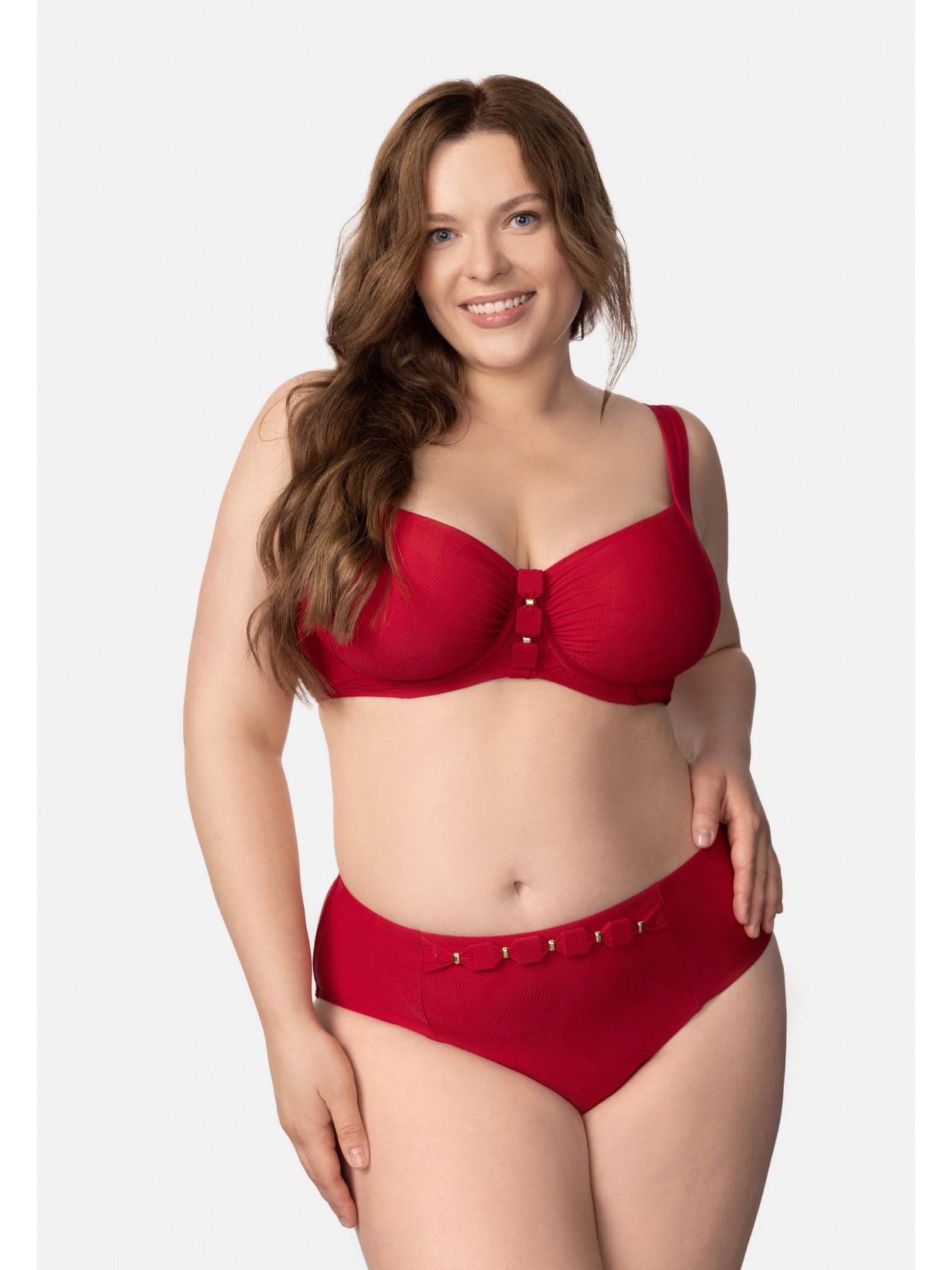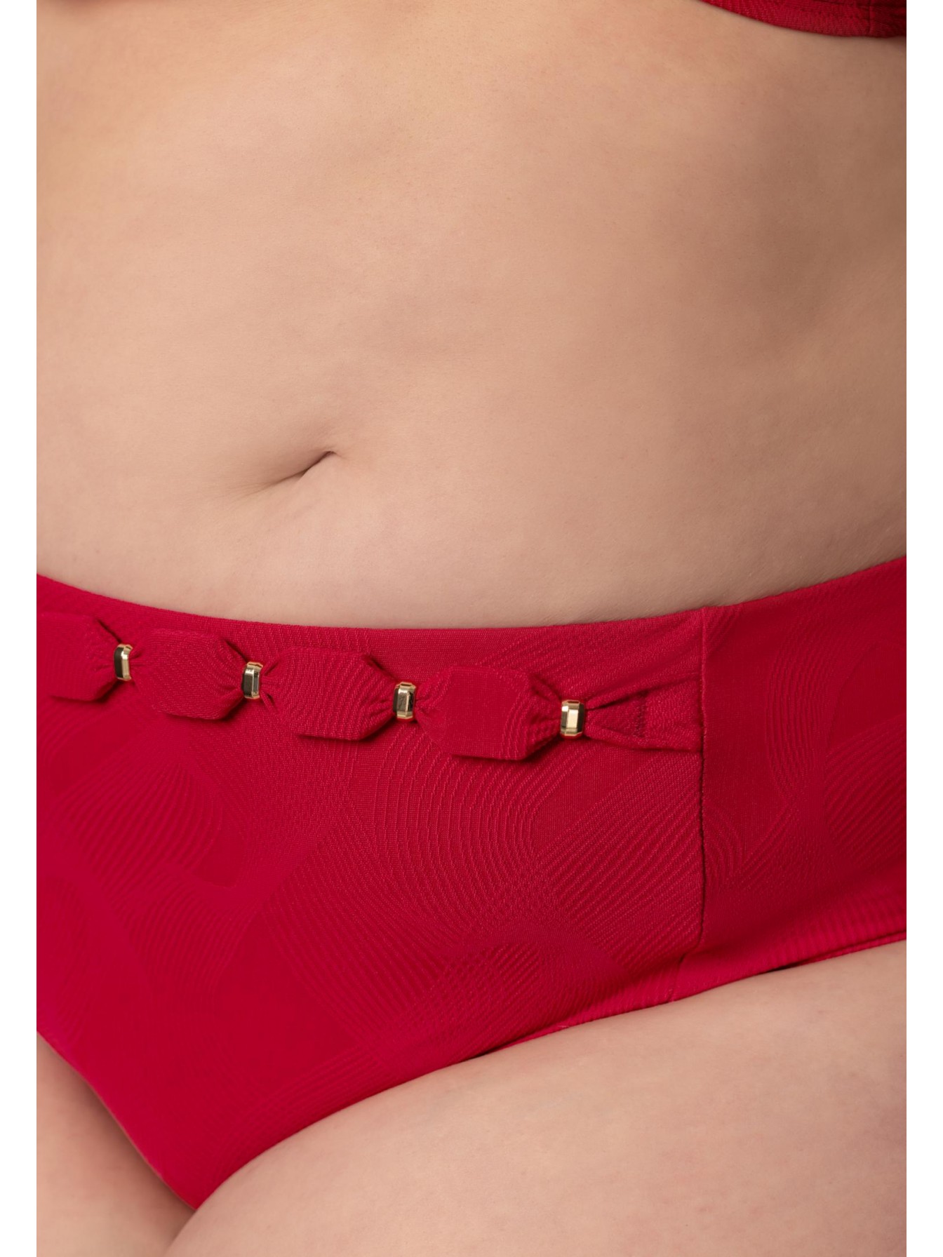 Брифы со средней линией талии. На передней детали по центру декоративный пояс-аксессуар.