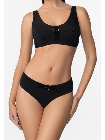 Брифы со средней линией талии. Эластичный пояс с аксессуаром на передней детали.