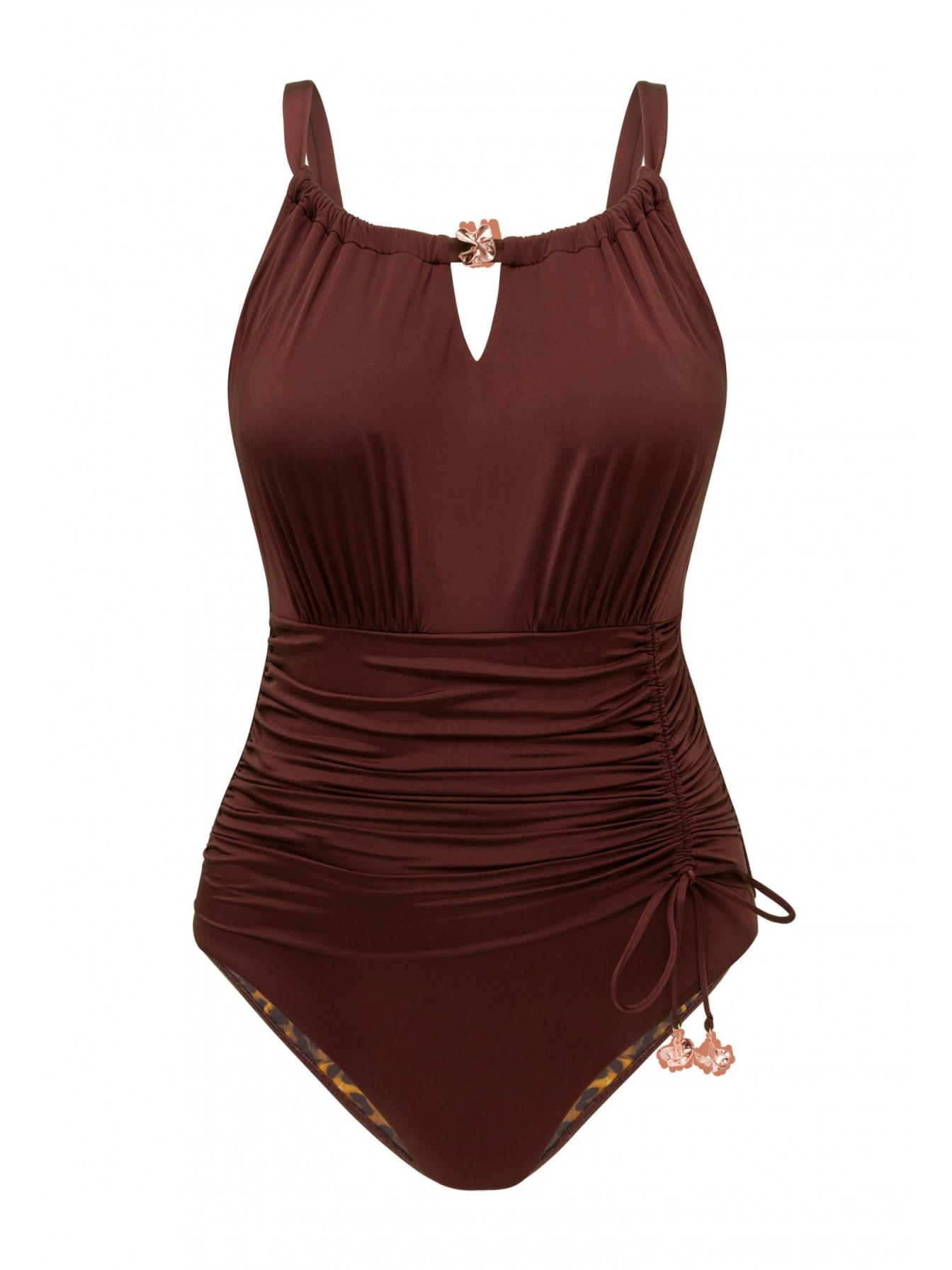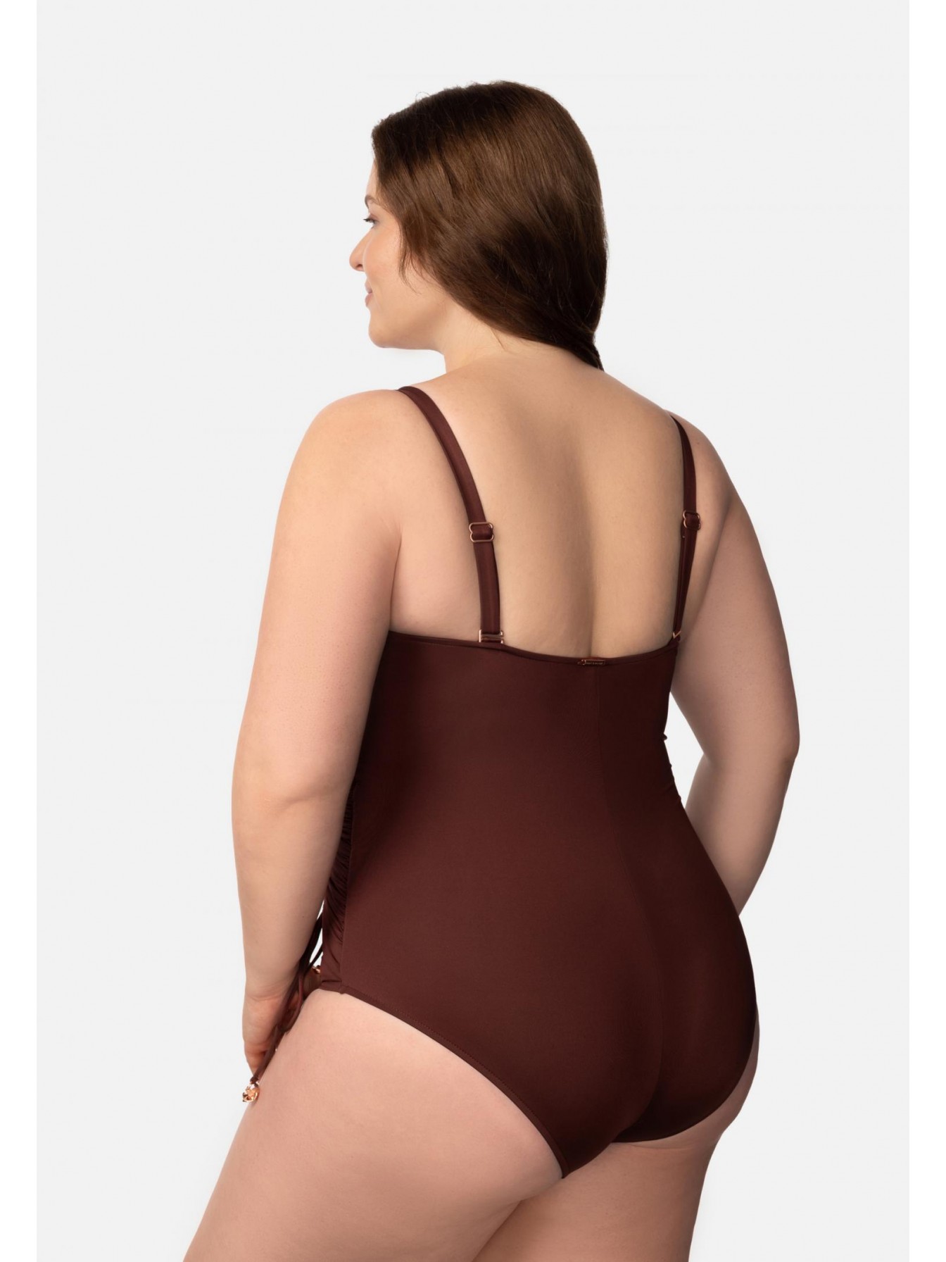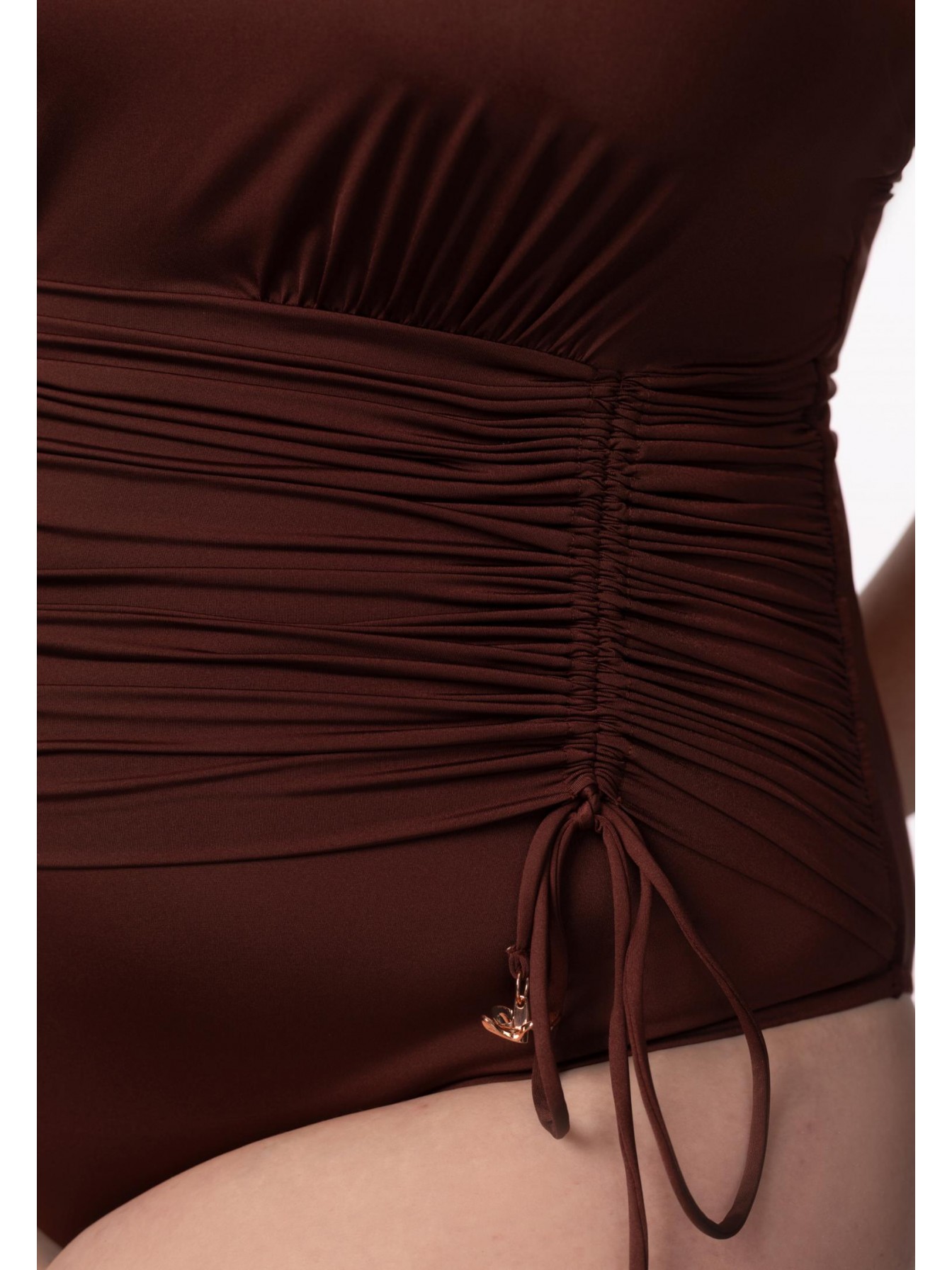 Купальник с тонкими съемными корректорами «Spacer» на каркасной поддержке. Под грудью поддерживающая резинка. Спереди симметричная драпировка. Ширина драпировки регулируется кулиской.