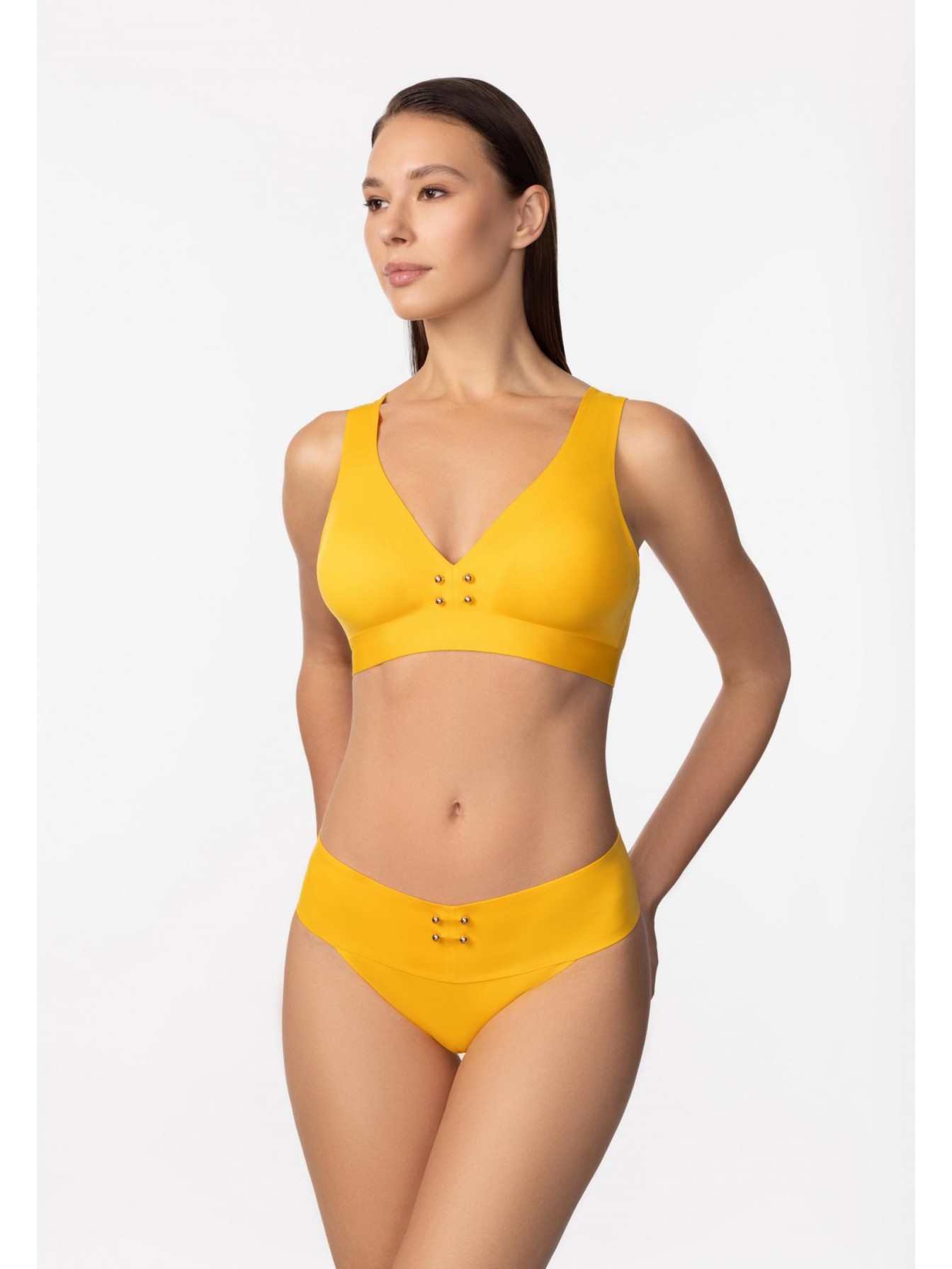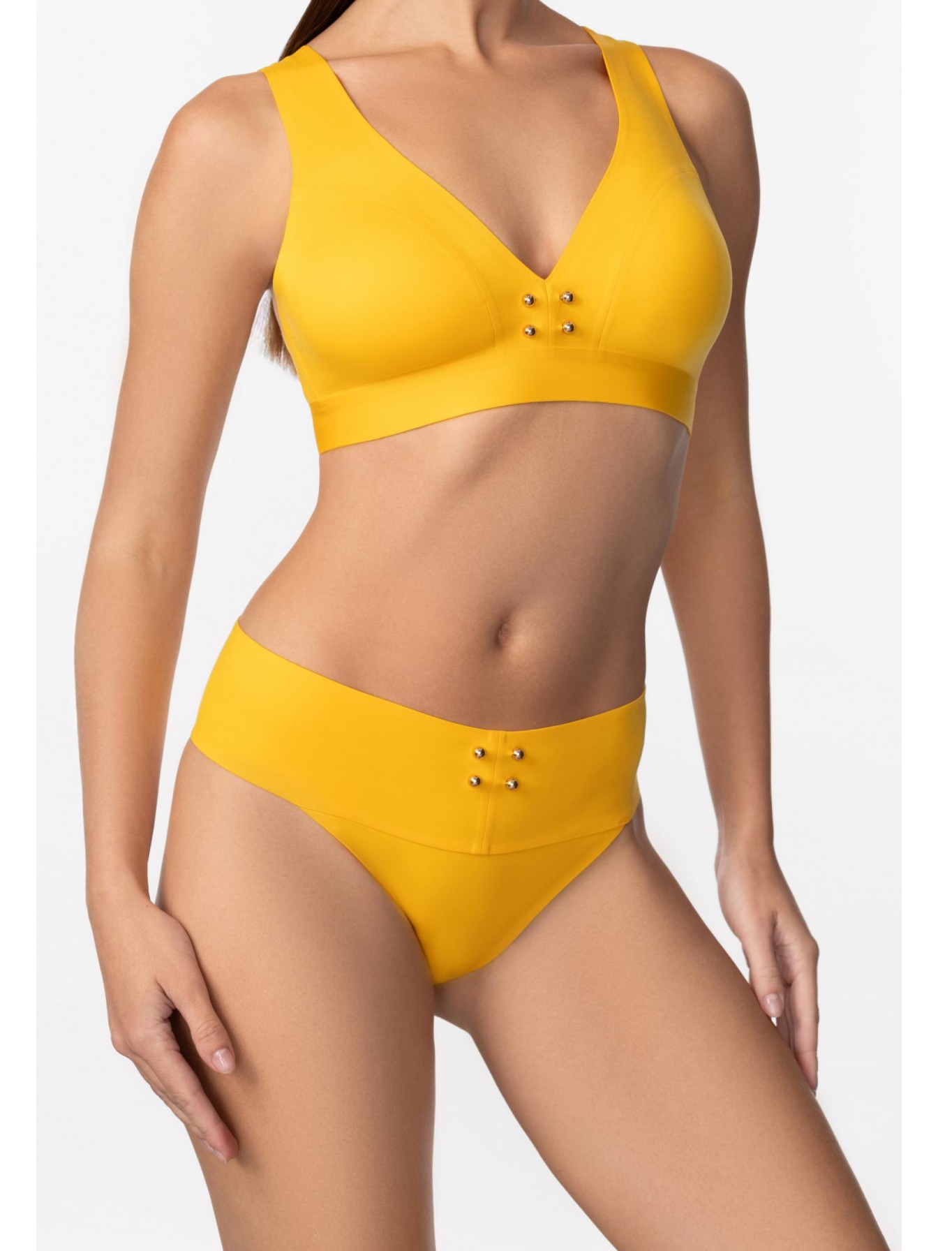 Брифы со средней линией талии на широком поясе. Бесшовная (Sewfree) обработка. Металлические аксессуары спереди.