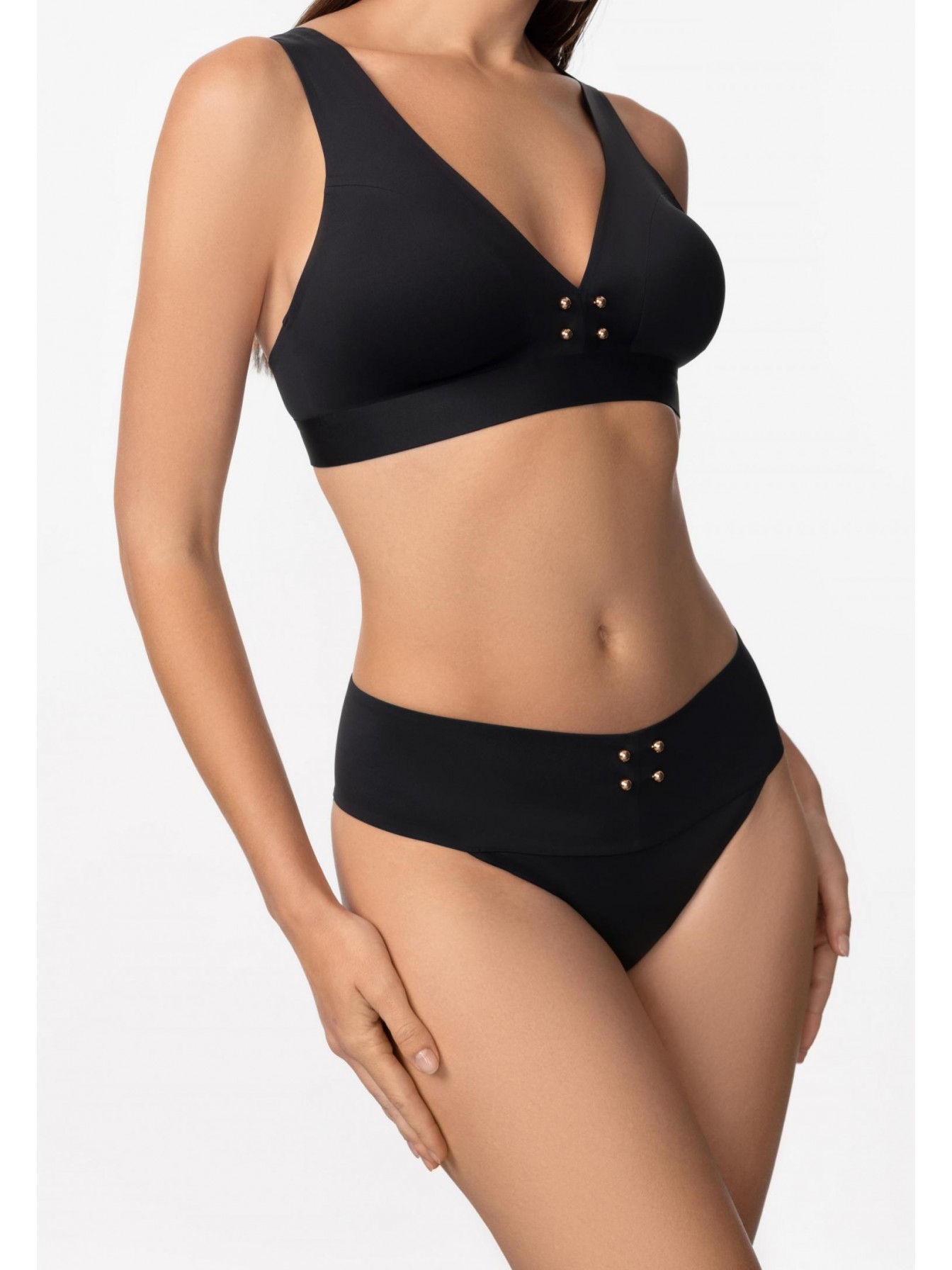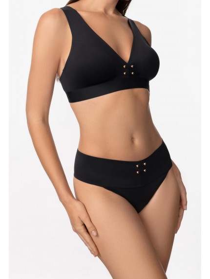 Брифы со средней линией талии на широком поясе. Бесшовная (Sewfree) обработка. Металлические аксессуары спереди.