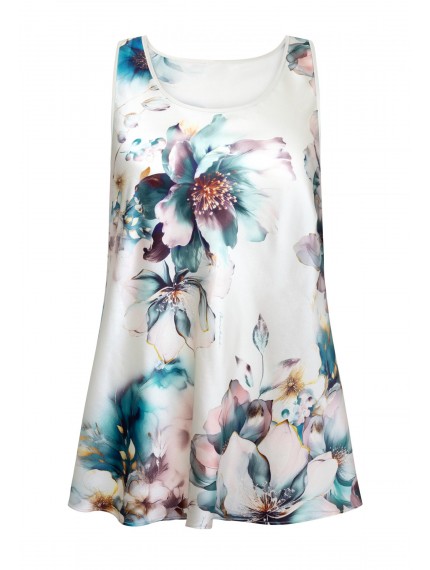 Топ свободного кроя из шелка. Широкие бретели. На спине разрез с запахом.