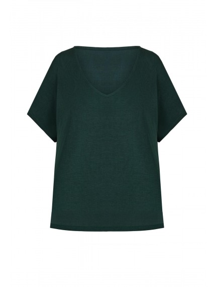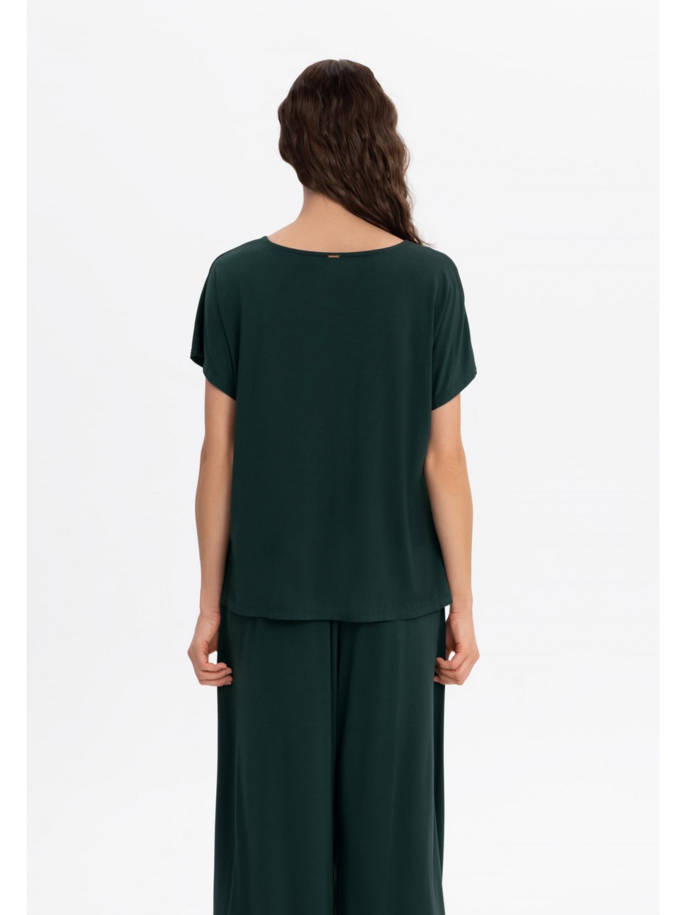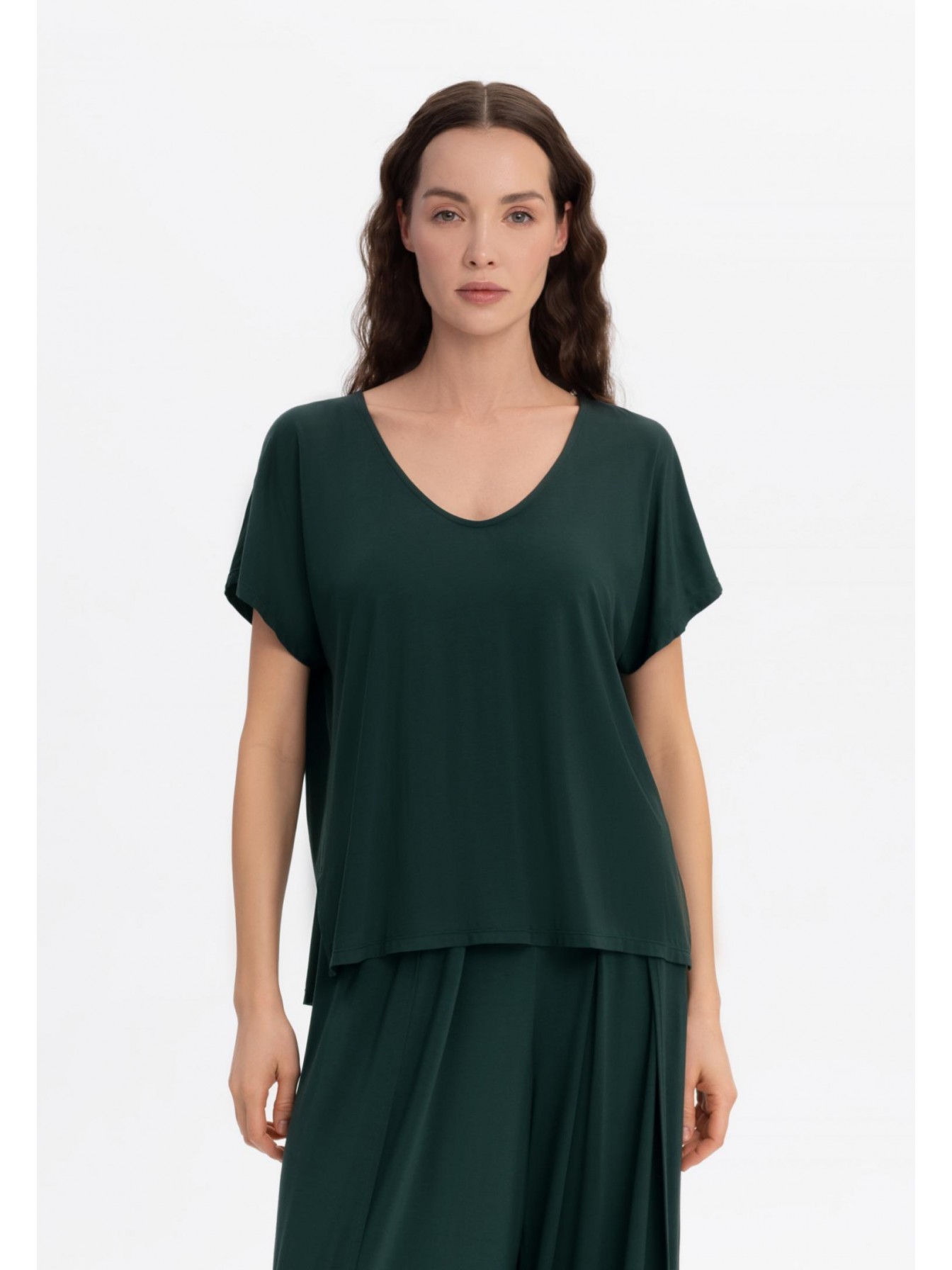 Топ из модала прямого свободного кроя с коротким рукавом. V-образная линия декольте.