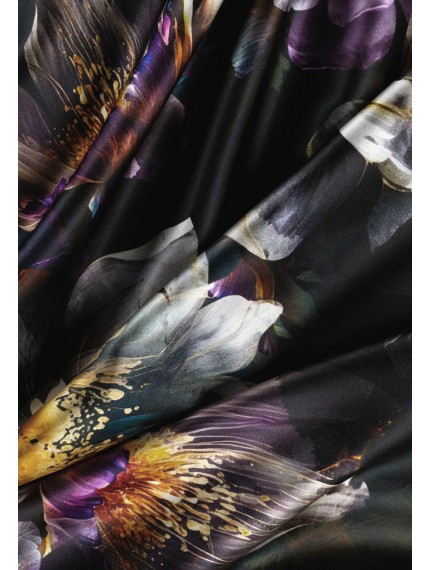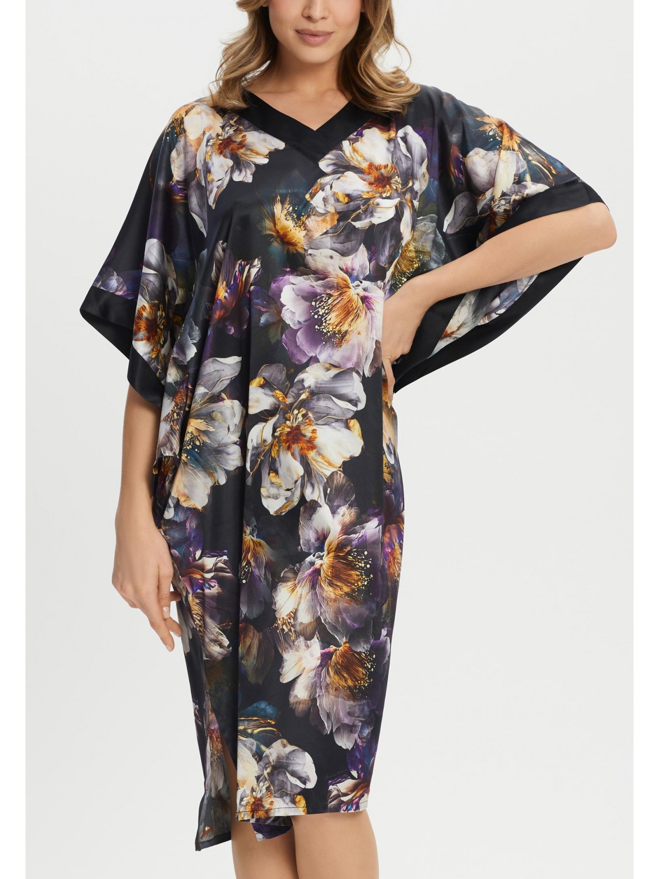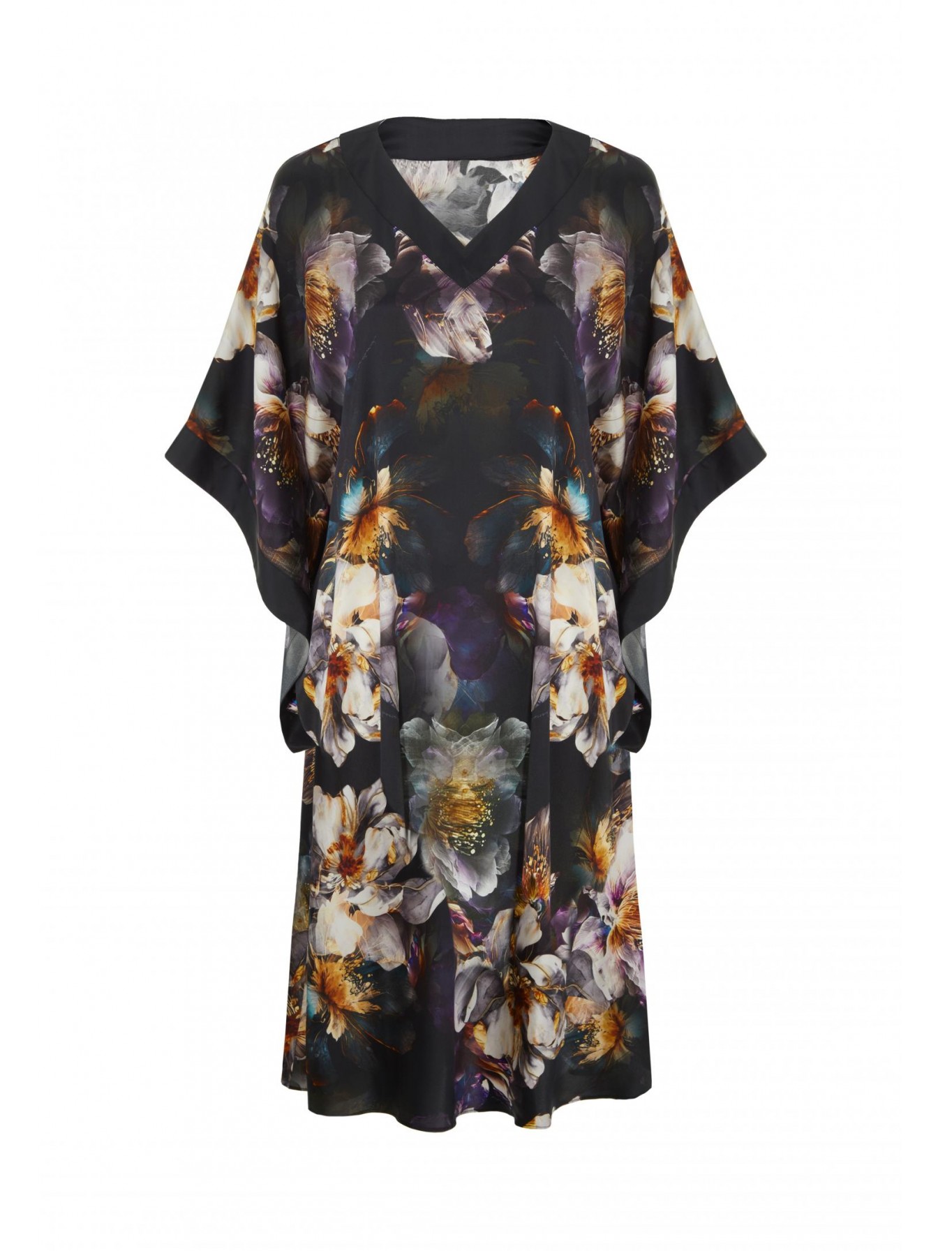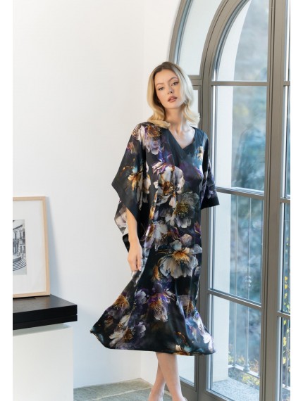 Шелковая туника свободного кроя. Длина чуть ниже уровня колен. Широкий цельнокроеный рукав.