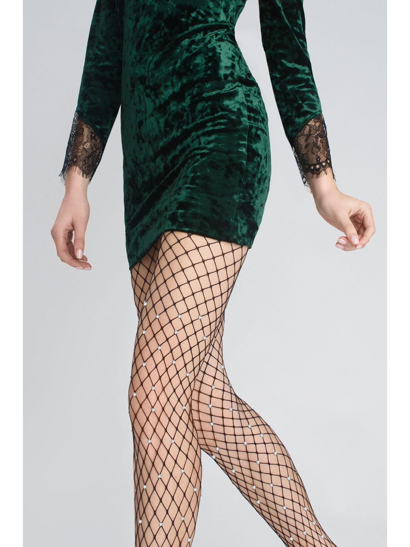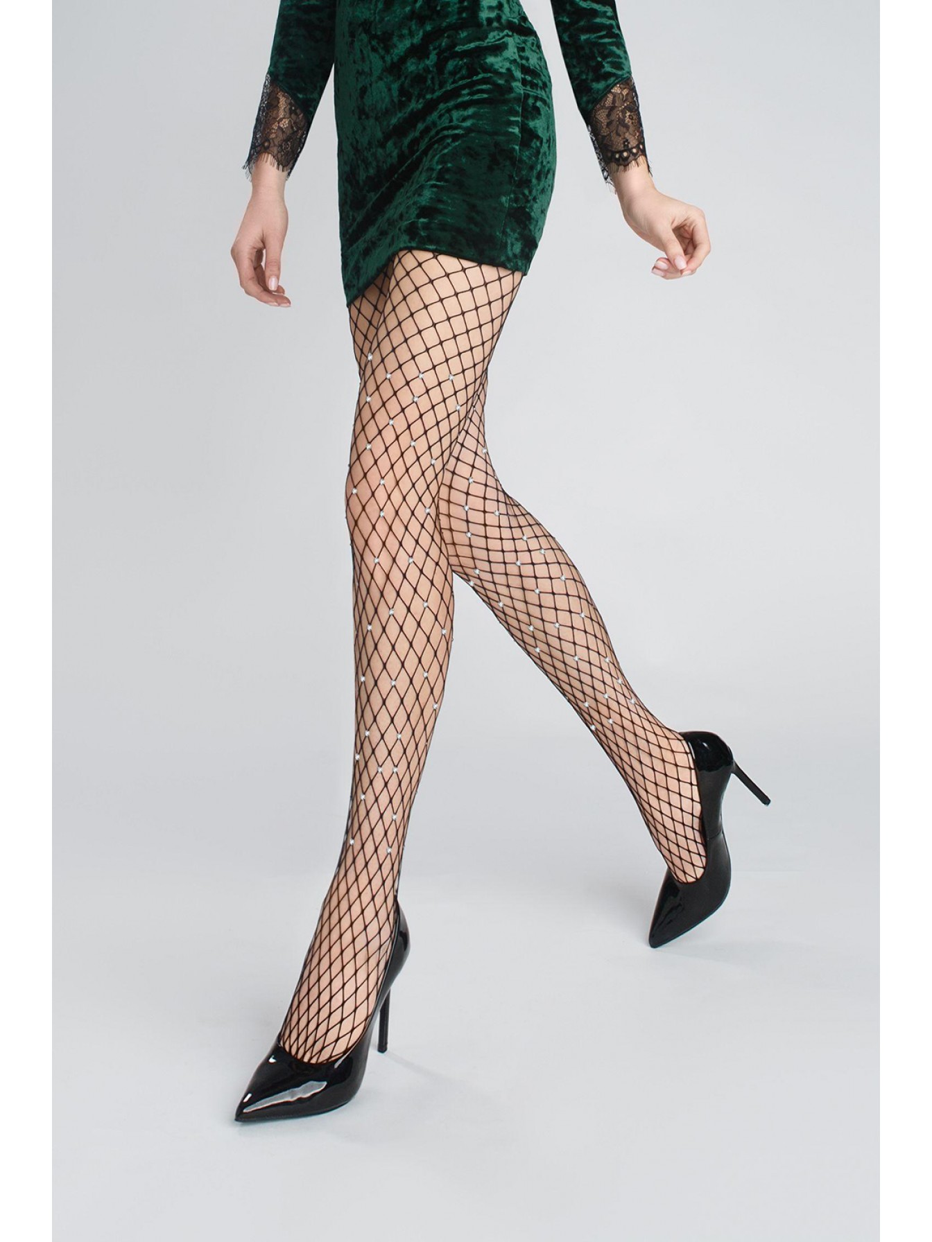 Фантазийные колготки в сетку со стразами Casting Jets. Колготки с тонким поясом - резинкой, без ластовицы, уплотненный носочек.