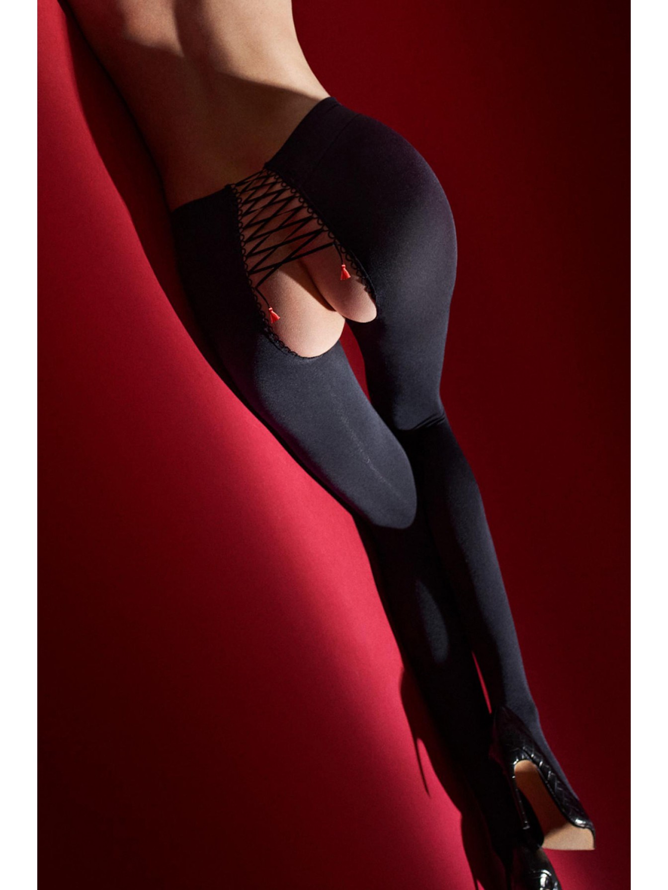 Колготки с доступом H01 плотностью 100 den, изготовленные из 3D микрофибры. Трикотажный пояс 6 см. шнуровка спереди и сзади, невидимое усиление мыска.