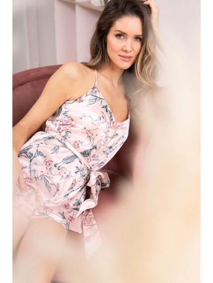 Игривый комбидресс Mia-Amore на тонких бретелях с центральной застежкой на пуговицы, выполнен из принтованного искусственного шелка и с однотонной отделкой. По бокам расположены карманы. Линию талии можно подчеркнуть за счет пояса, который идет в комплекте.