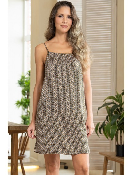 Короткая сорочка Mia-Amore на тонких бретелях, выполнена из тканой принтованной вискозы с шелком. По бокам обработаны разрезы для свободы движения.