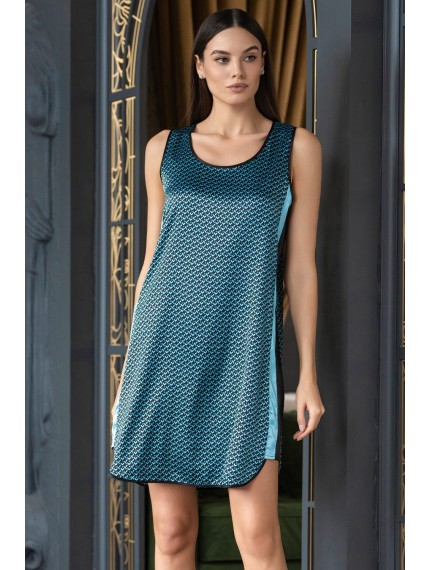 Сорочка Mia-Amore на бретелях маечного типа выполнена из принтованного искусственного шелка. По бокам сорочки декор из однотонных вставок.