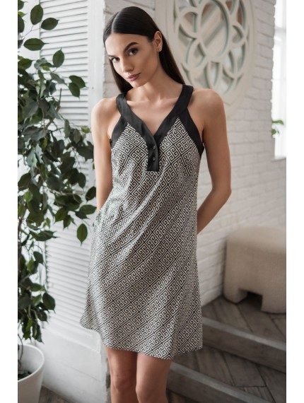 Короткая сорочка Mia-Amore на широких бретелях и застежкой на пуговицы по центру выреза, выполнена из принтованного смесового шелка с однотонной отделкой.