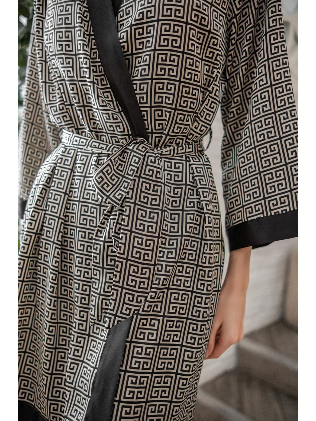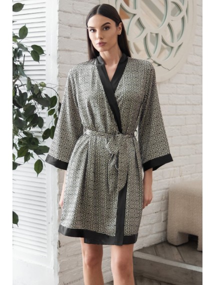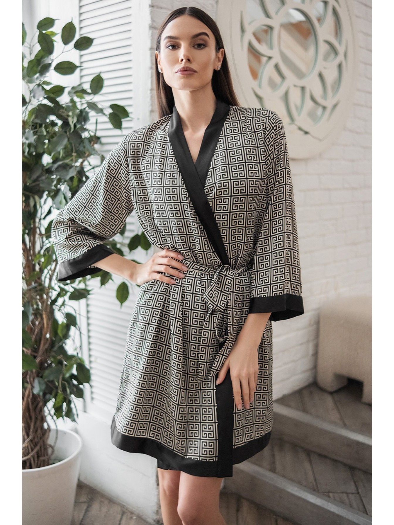 Короткий халат-кимоно Mia-Amore с широким рукавом длиной 3/4 . Халат выполнен из смесового шелка с однотонной отделкой. По бокам обработаны карманы.