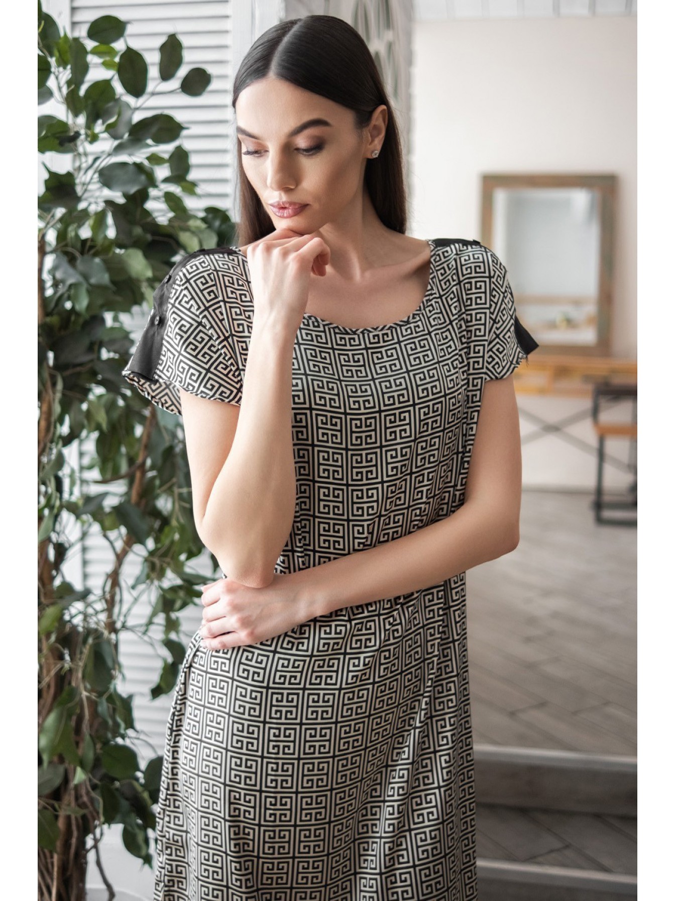 Короткая туника Mia-Amore свободно силуэта с коротким рукавом, которая выполнена из принтованного смесового шелка с однотонной отделкой. По бокам расположены карманы, по низу обработаны разрезы. Линию талии можно подчеркнуть за счет пояса, который идет в комплекте.