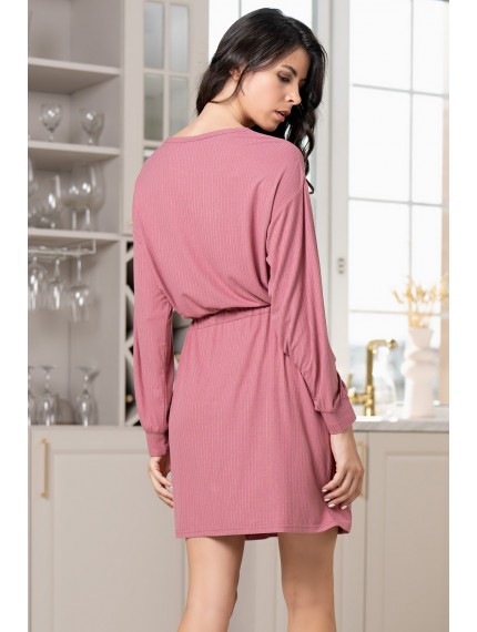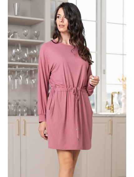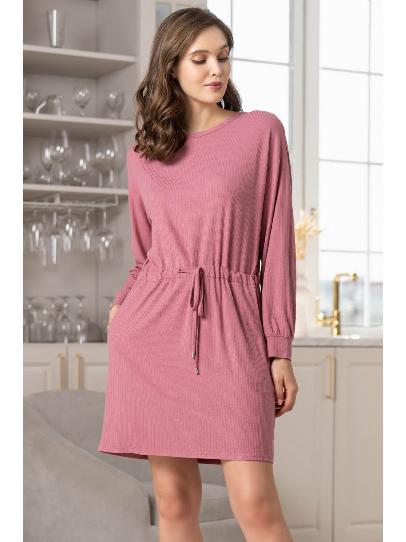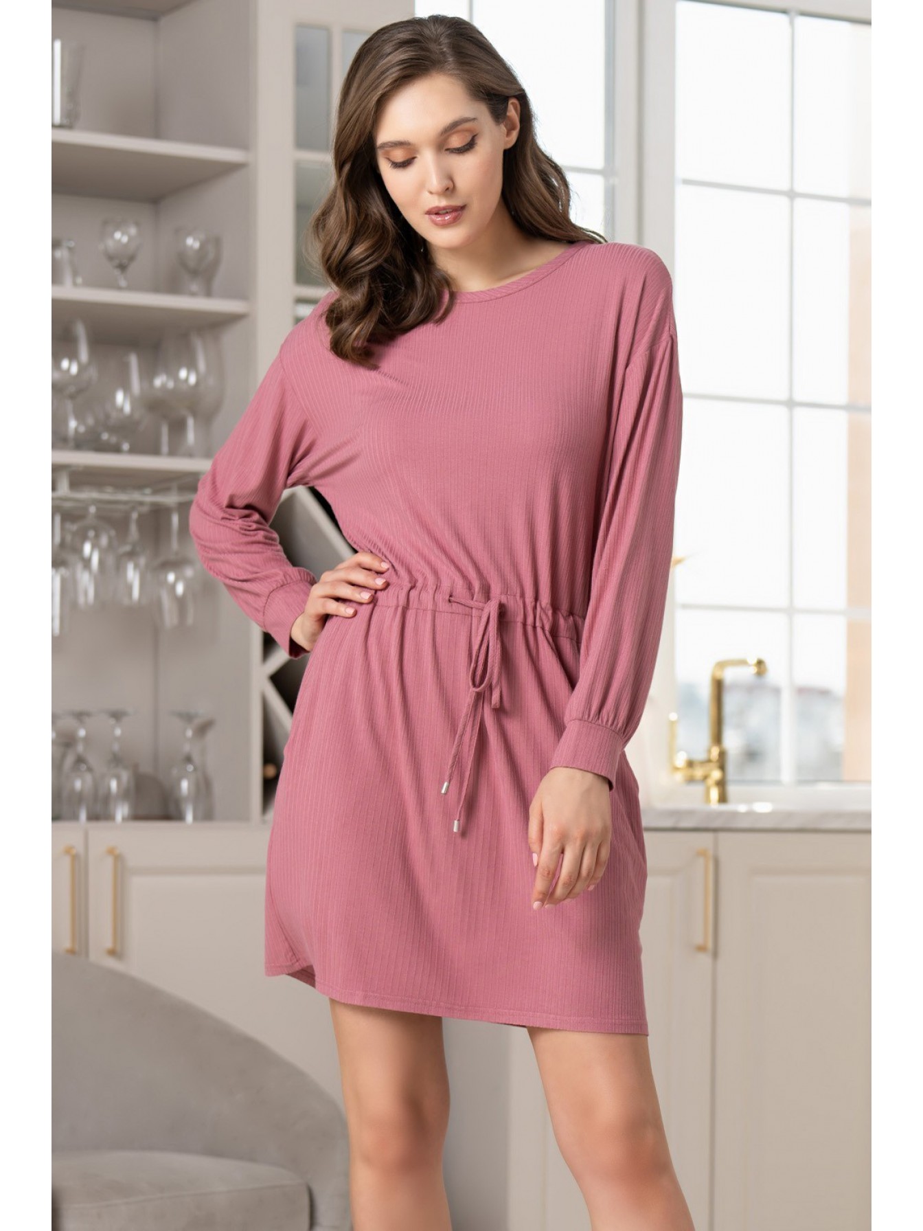 Туника до колен Mia-Amore выполнена из трикотажного полотна в рубчик. Туника с длинными втачными рукавами на манжетах по низу и кулиской на талии, которая регулирует силуэт изделия.