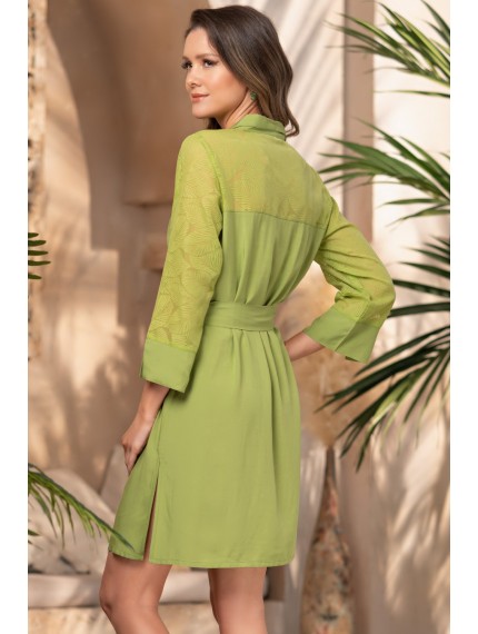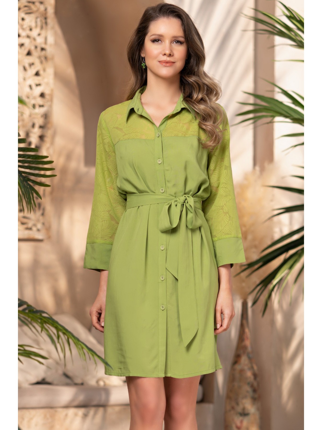 Рубашка Mia-Amore из 100% тканной вискозы с полупрозрачными вставками. Длиной чуть выше колена и рукавом длиной 7/8. По бокам обработаны разрезы. Линию талии можно подчеркнуть за счет пояса, который идет в комплекте.