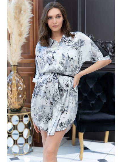 Удлиннёная рубашка Mia-Amore центральной застежкой и укороченными рукавами выполнена из искусственного принтованного шелка. Рубашка с акцентами на плечах и фигурным низом может быть как самостоятельным элементом в одежде, так и стать компаньоном для брюк и джеггинсов.