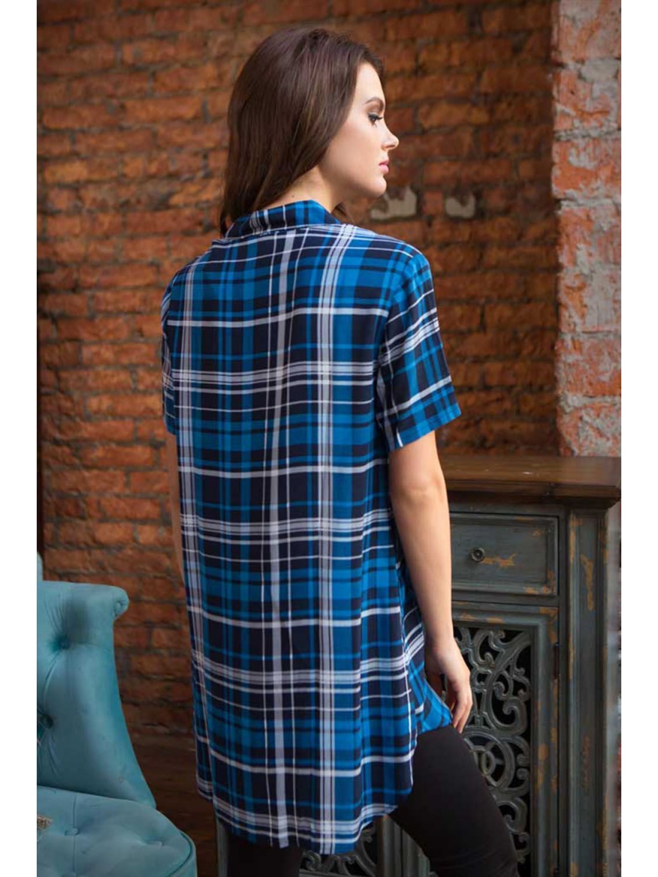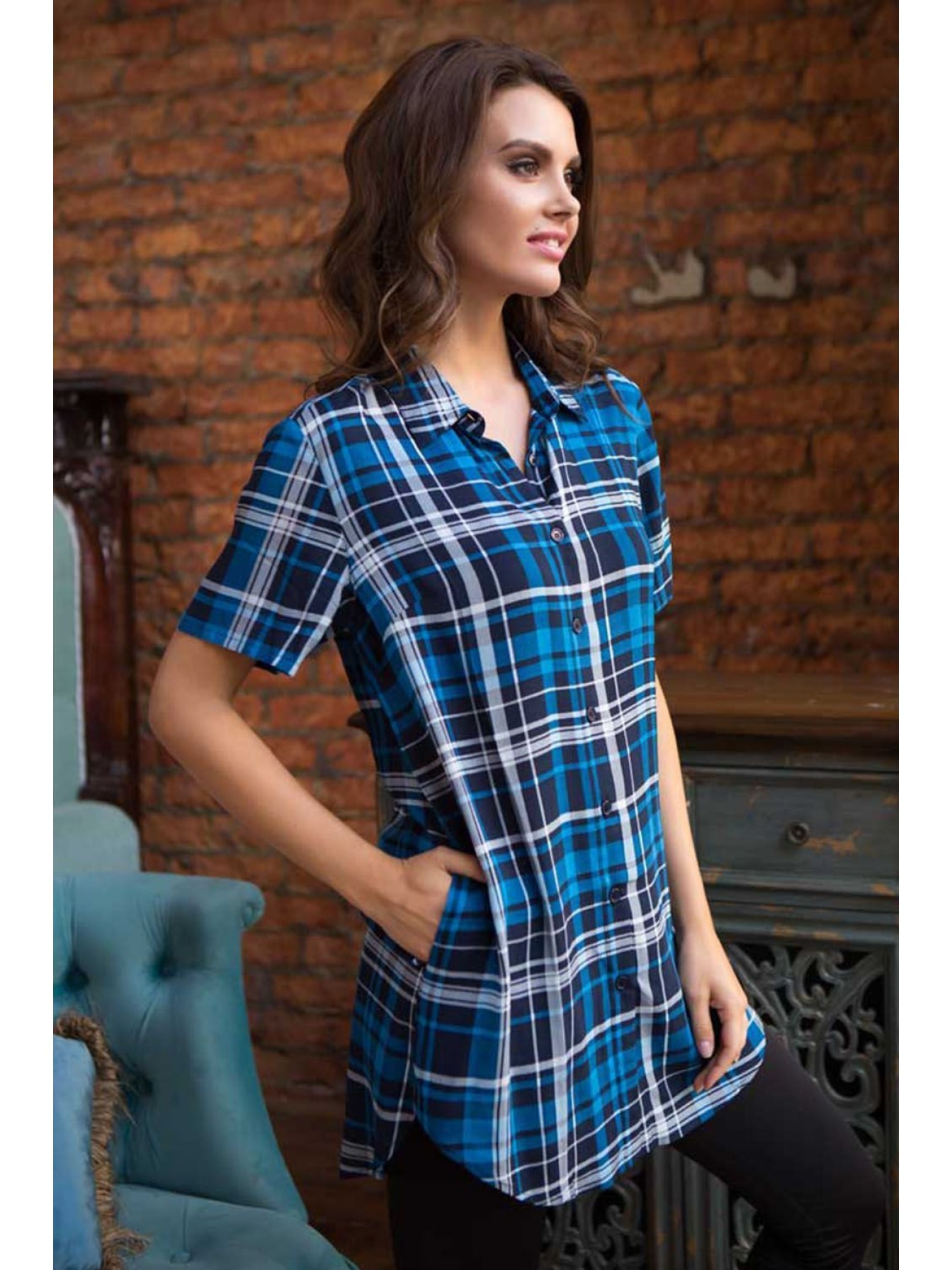 Туника Mia-Mia домашняя женская средней длины полуприлегающего силуэта из принтованной вискозы, с отложным воротником. Воротник рубашечного типа. В боковых швах имеются карманы. Туника застегивается на пуговицы.