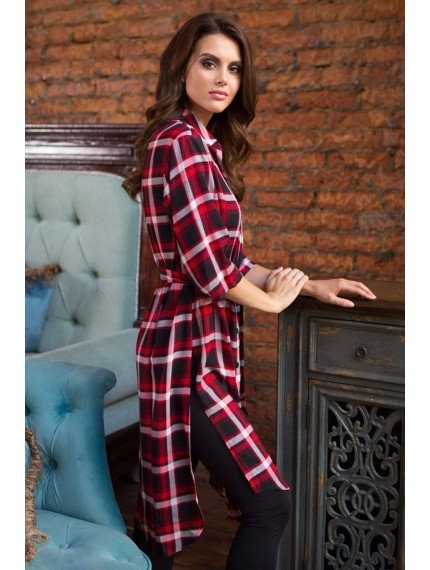 Туника Миа-Миа домашняя женская длиной ниже колена, полуприлегающего силуэта из принтованной вискозы, с отложным воротником. Воротник рубашечного типа. Туника застегивается на пуговицы и подвязывается поясом.