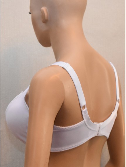 Бежевый полукружевной бюстгальтер с T-образным швом. Нижняя часть чашек гладкая, верхняя - современное кружево. Тройное членение чашек способствует качественно поддержке большой груди. Размерный ряд расширенный - до чашек G,H,I,J. Бретели - широкие, регулируемые резинки. Застёжка на 2 крючка в 4 ряда.