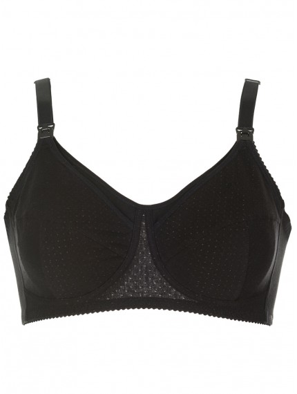 Хлопковый бюстгальтер для кормления грудь. Выполнен из черного эластичного трикотажного х/б полотна. Чашки без косточек, полностью из хлопка. Удобная застёжка позволяет быстро и без хлопот покормить ребёнка. Классическая модель удобного и безопасного бюстгальтера для кормящей матери.