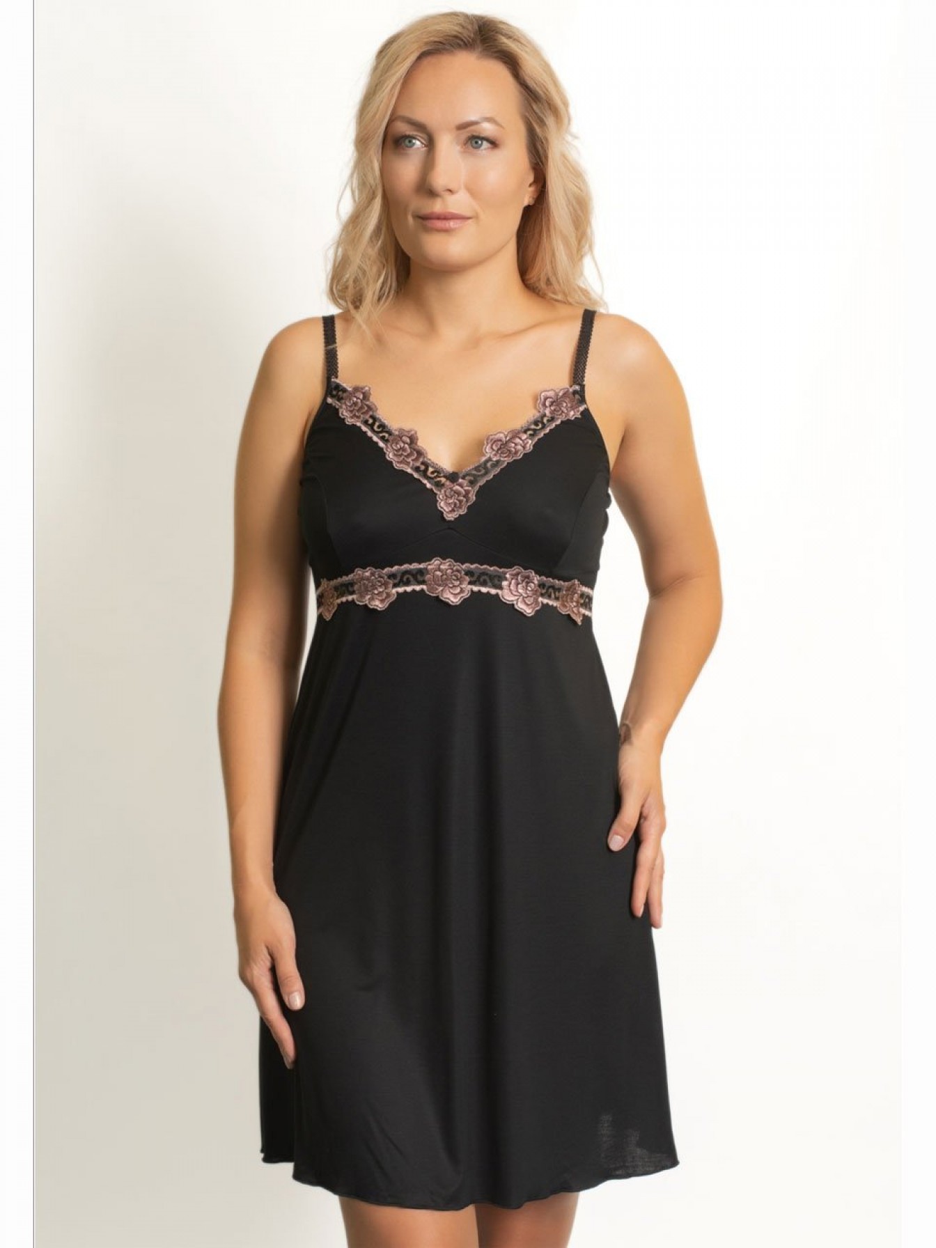 Чёрная женская ночная рубашка. Выполнена из мягкого и тонкого итальянского хлопка. Верхняя часть декорирован нежной итальянской вышивкой.