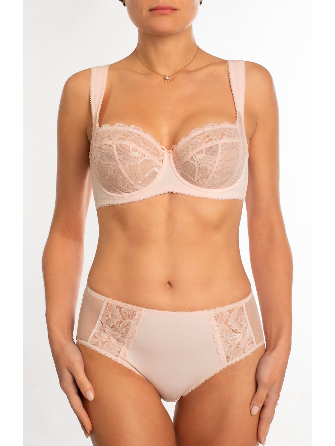 Классическая модель трусов коричневого цвета со средней линией талии, изготовлены из мягкой, эластичной микрофибры. Спереди декорированы небольшими деталями из нежного кружева.