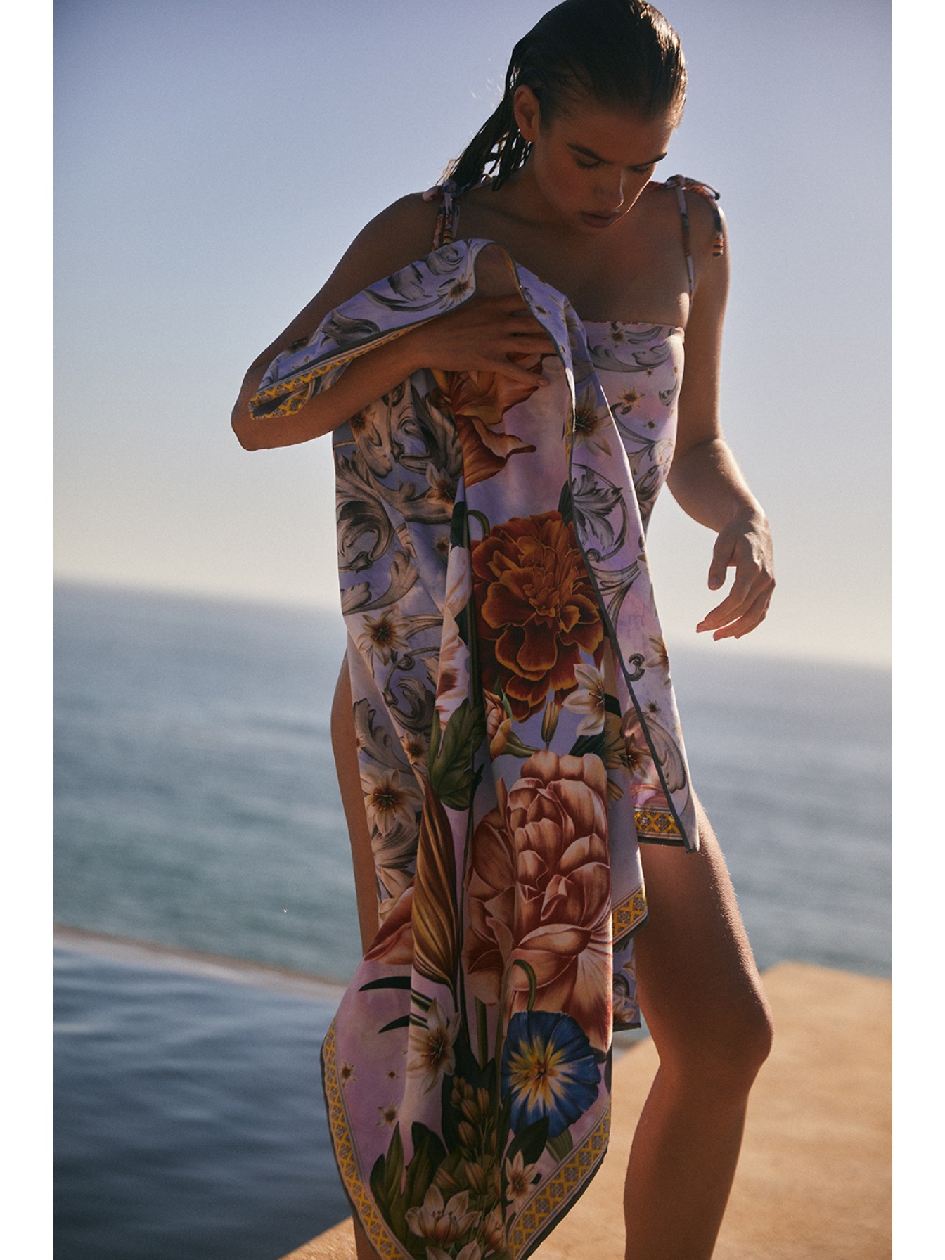 Элегантное парео с уникальным дизайнерским принтом. Составляет роскошные купальные ансамбли с любым изделием из линии. Также парео можно использовать как платок, тюрбан или шарф.