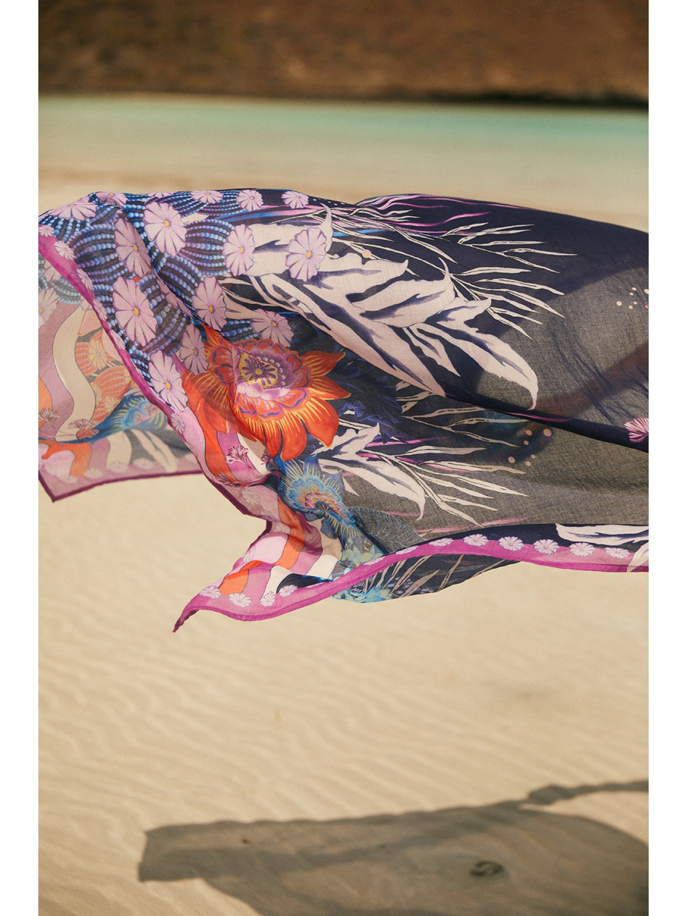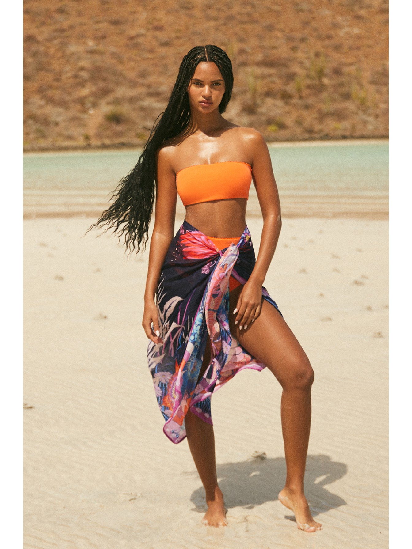 Яркое парео с уникальным дизайнерским принтом. Составляет роскошные купальные ансамбли с любым изделием из линии. Также парео можно использовать как платок, тюрбан или шарф.