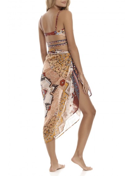 Элегантное парео с красивым принтом. Составляет роскошные купальные ансамбли с любым изделием из линии. Также парео можно использовать как платок, тюрбан или шарф.