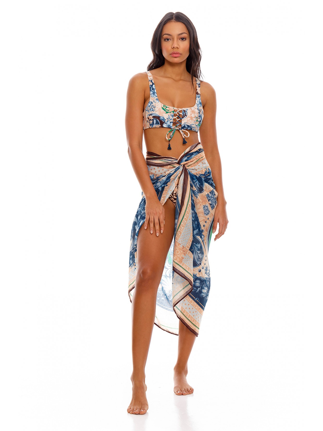 Элегантное парео с уникальным дизайнерским принтом. Составляет роскошные купальные ансамбли с любым изделием из линии. Также парео можно использовать как платок, тюрбан или шарф.