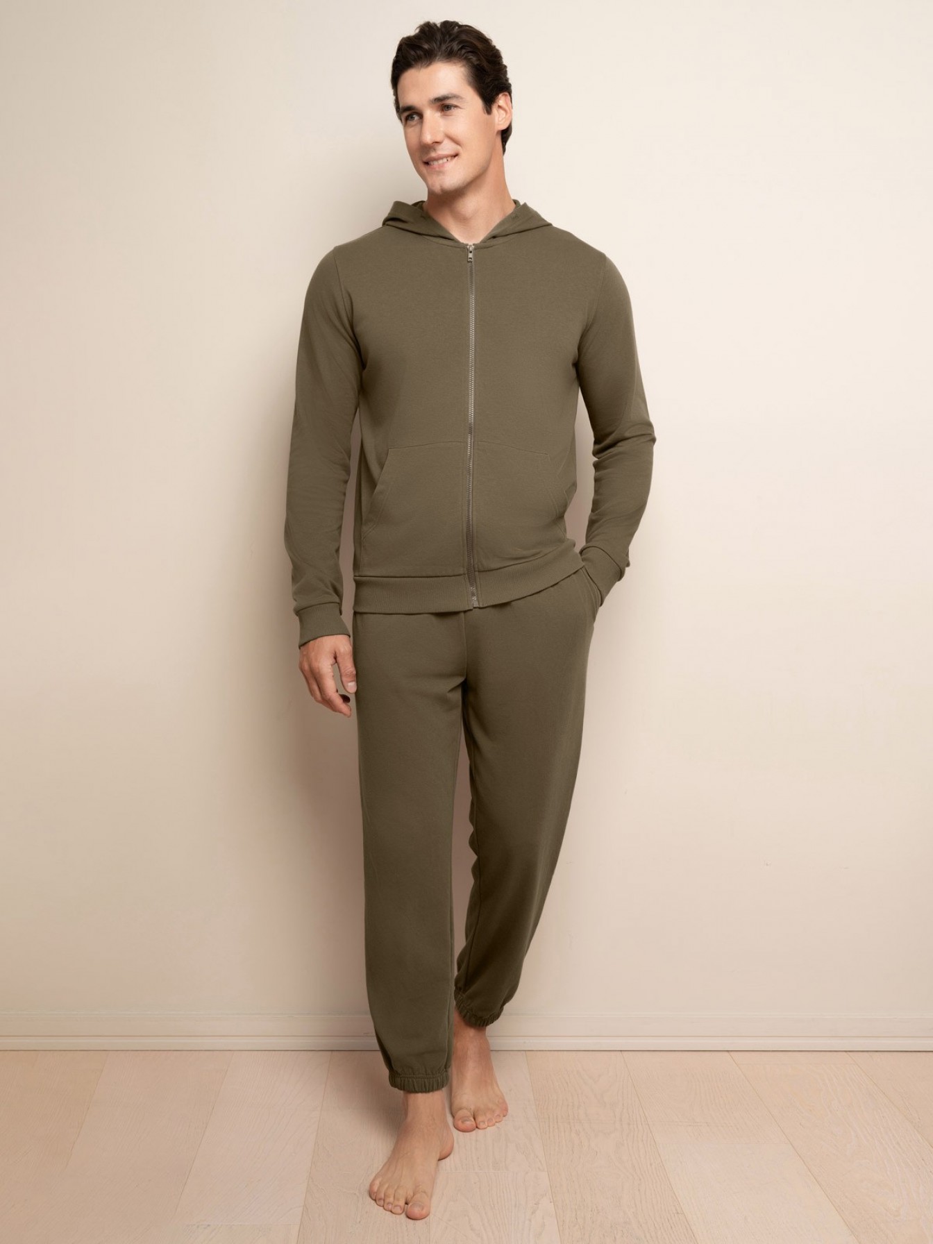 Мужские пижамы от торговой марки Индефини. Идеальный выбор для подарка мужчине.Брюки мужские бренда Indefini из смеси хлопка и полиэстера прямого кроя обеспечивают комфорт и практичность.Широкая эластичная резинка на талии и регулирующий шнурок позволяют адаптировать посадку по фигуре.Манжеты на штанинах добавляют помогают брюкам удобно фиксироваться, не создавая неудобств при движении.Кофта изготовлена из смеси хлопка и полиэстера.Кофта на молнии позволяет легко надевать и снимать её, а боковые карманы подходят для хранения мелочей.Длинные рукава с манжетами обеспечивают удобную посадку, а капюшон со шнурком добавляет спортивный стиль и защиту в прохладную погоду.Эластичная резинка внизу фиксирует кофту на талии, обеспечивая оптимальную посадку и дополнительную защиту от ветра.