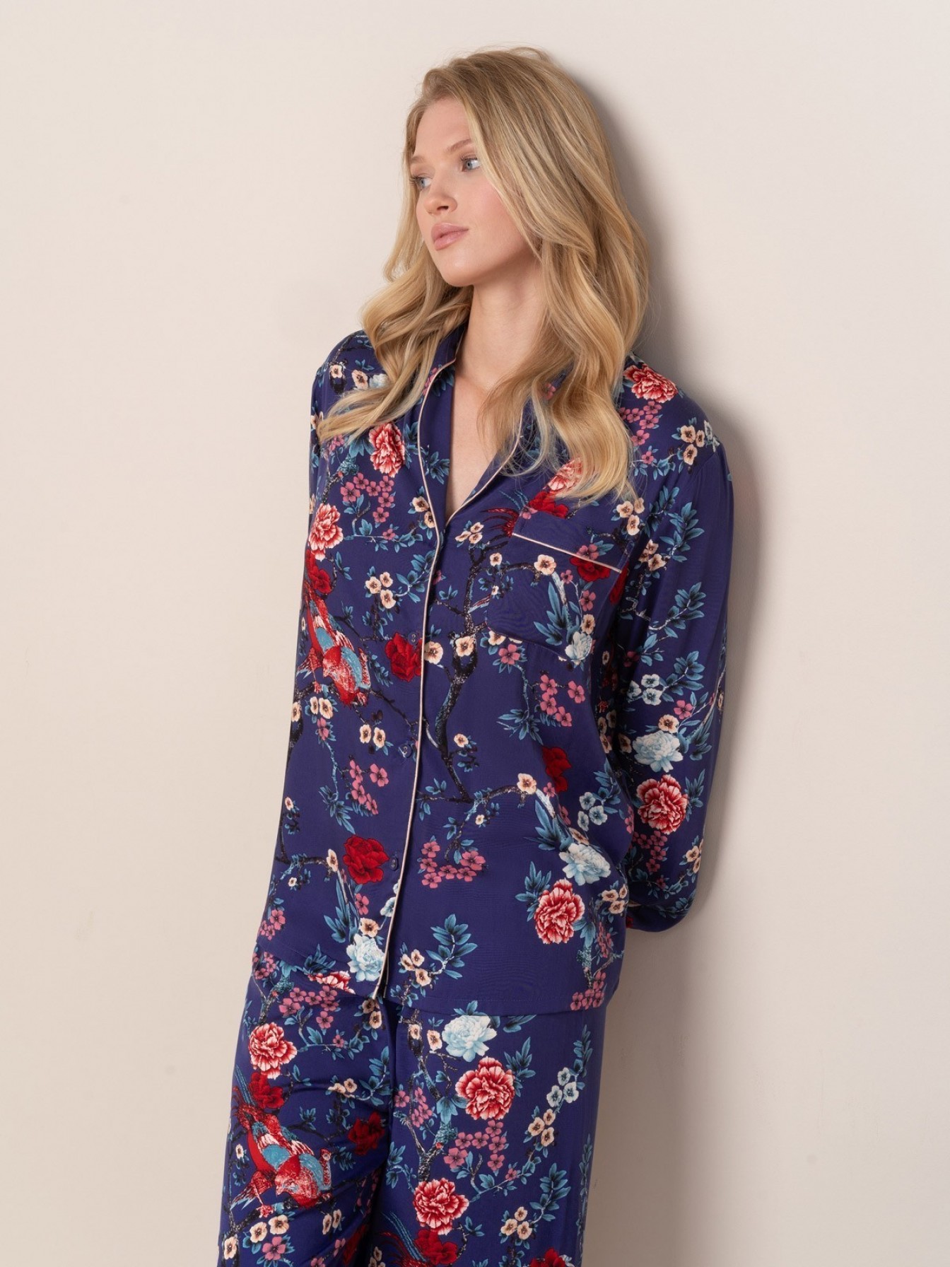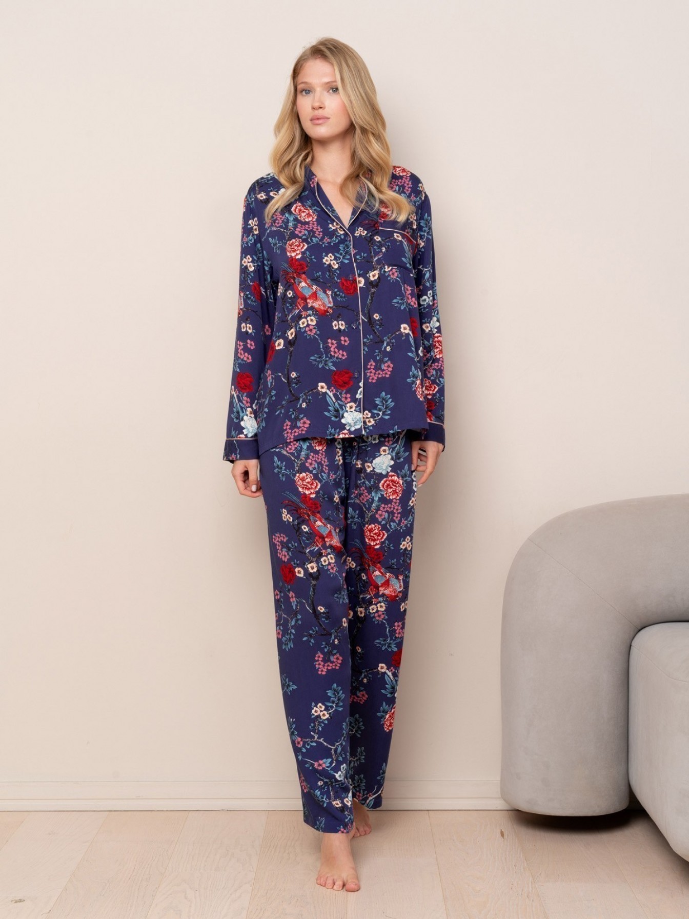 Стильная домашняя одежда от торговой марки Индефини в виде кофты с длинным рукавом и брюками, самая популярная, можно носить в холодное время года. Такой вид одежды подарит комфорт и уют дома.