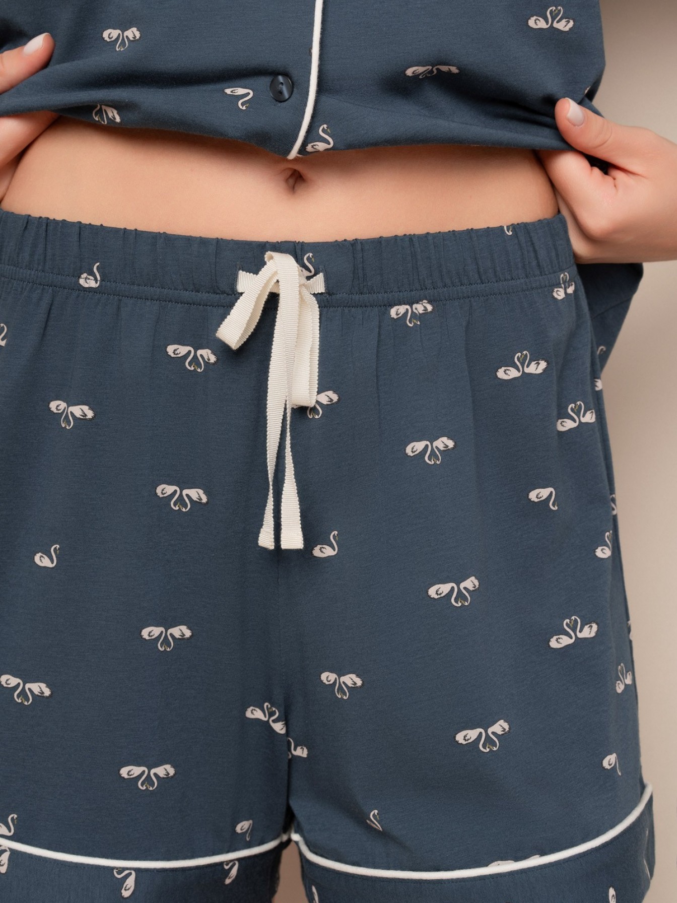 Стильная домашняя одежда от торговой марки Индефини в виде футболка с шортами, самая популярная, можно носить в любое время года. Такой вид одежды подарит комфорт и уют дома.