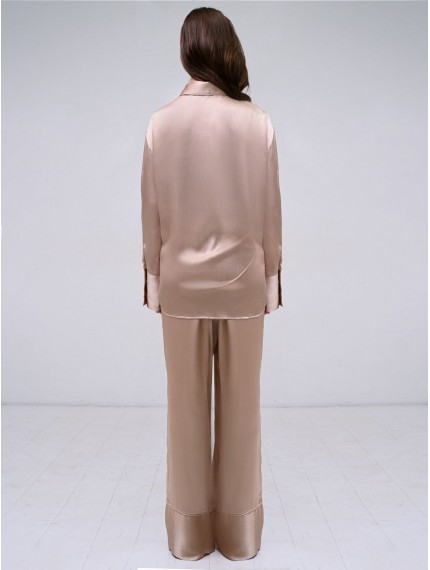 Стильная домашняя одежда от торговой марки Индефини в виде рубашки с длинным рукавом и брюками, самая популярная, можно носить в холодное время года. Такой вид одежды подарит комфорт и уют дома.