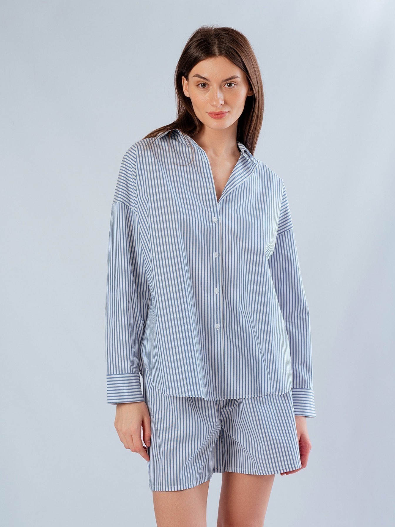 Стильная домашняя одежда от торговой марки Индефини в виде рубашка с шортами, самая популярная, можно носить в любое время года. Такой вид одежды подарит комфорт и уют дома.