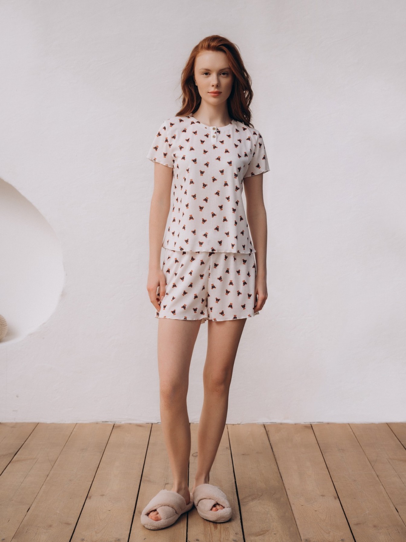 Стильная домашняя одежда от торговой марки Индефини в виде футболка с шортами, самая популярная, можно носить в любое время года. Такой вид одежды подарит комфорт и уют дома.