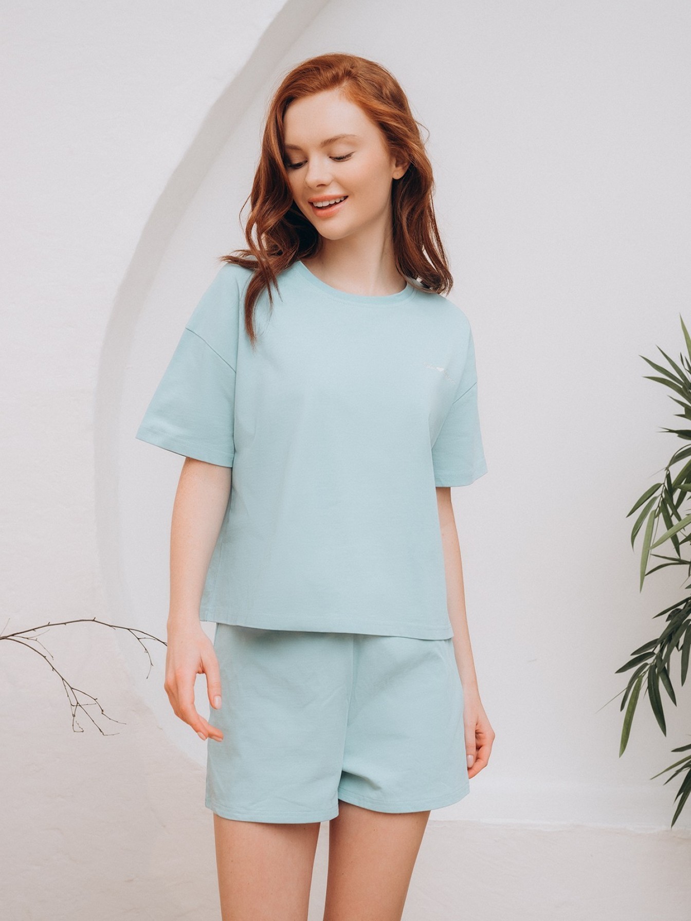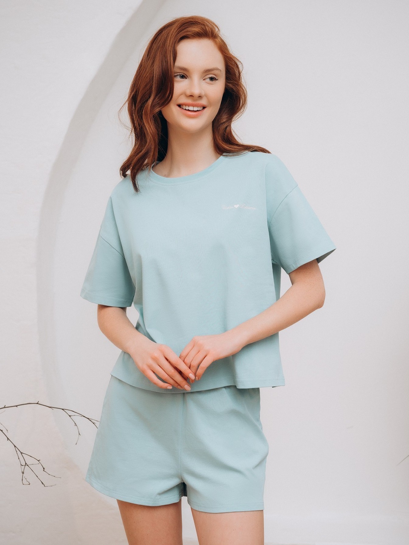 Стильная домашняя одежда от торговой марки Индефини в виде футболка с шортами, самая популярная, можно носить в любое время года. Такой вид одежды подарит комфорт и уют дома.