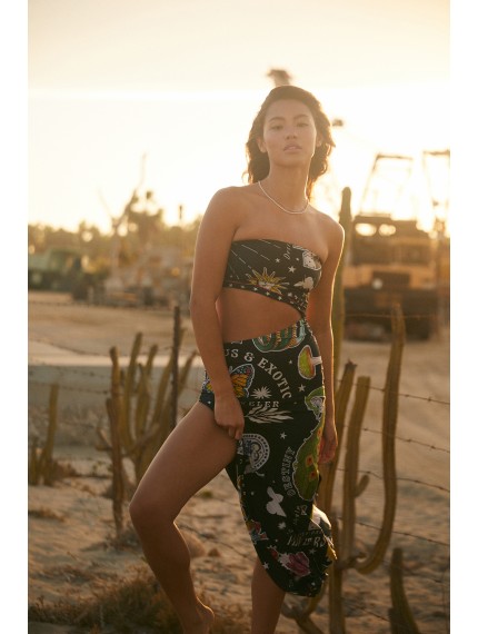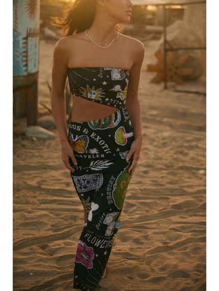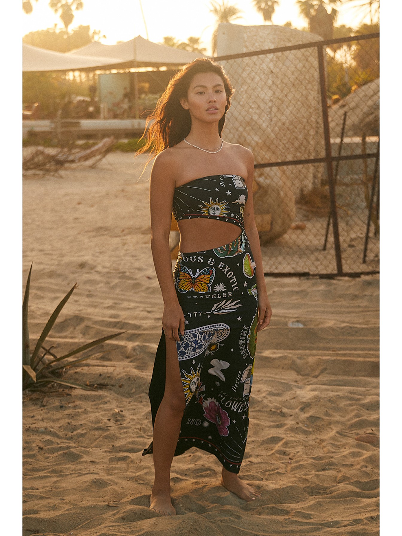 Платье длины макси с вырезом Gwen с контрастным принтом. Идеальный образ для пляжа и улицы.