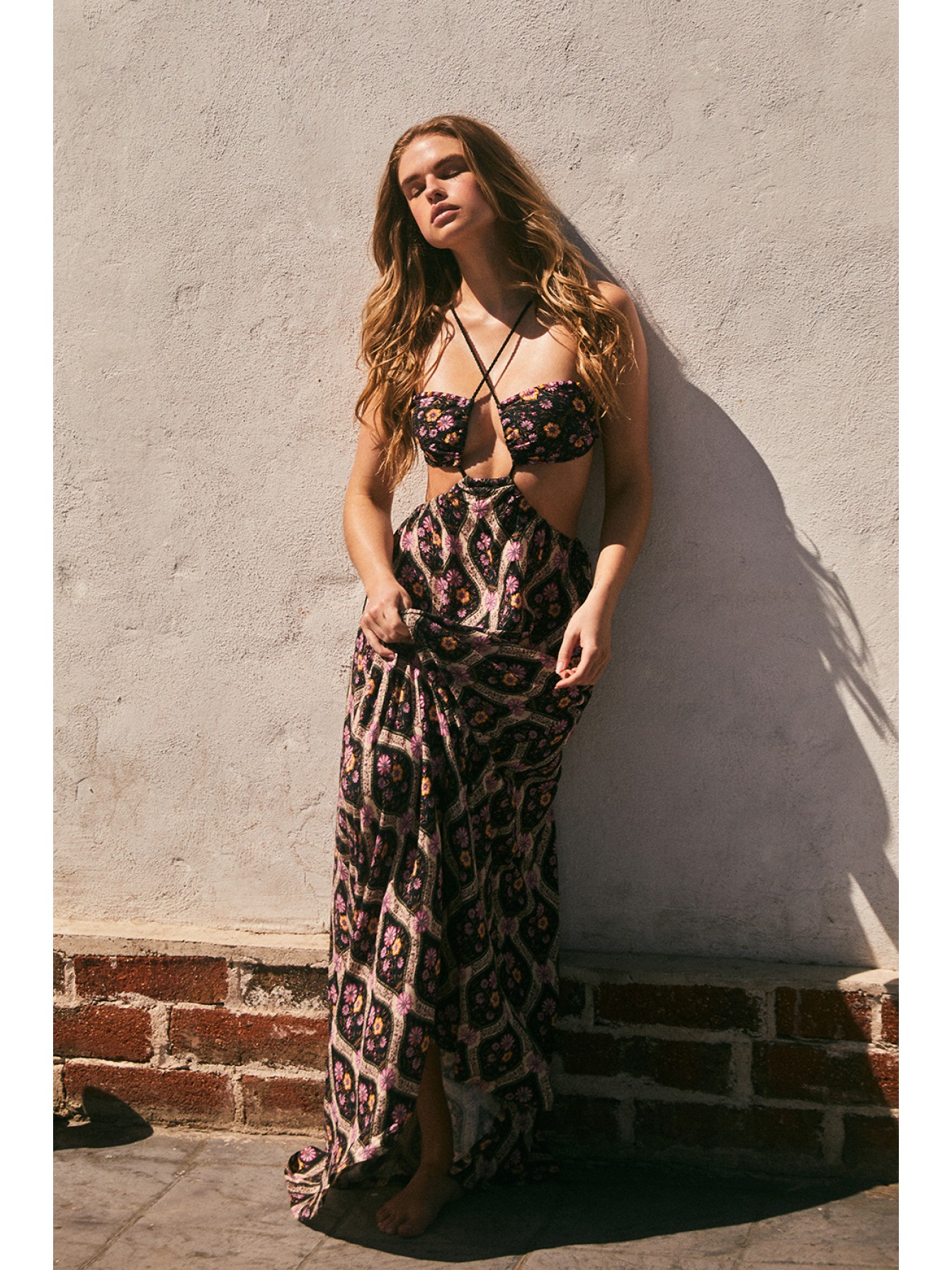 Длинное платье Daphne с контрастным текстурным принтом. Идеальный образ для пляжа и улицы.