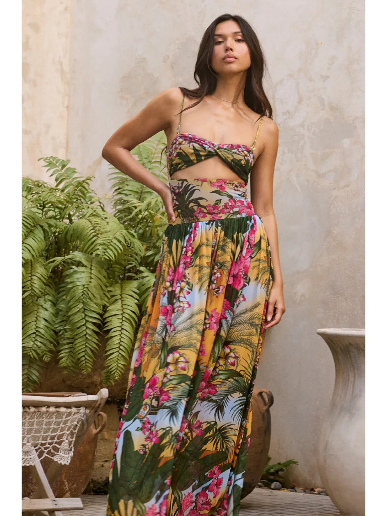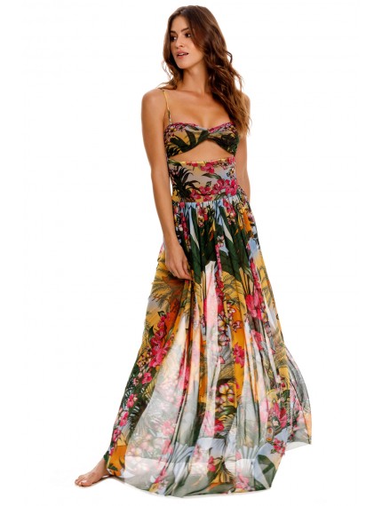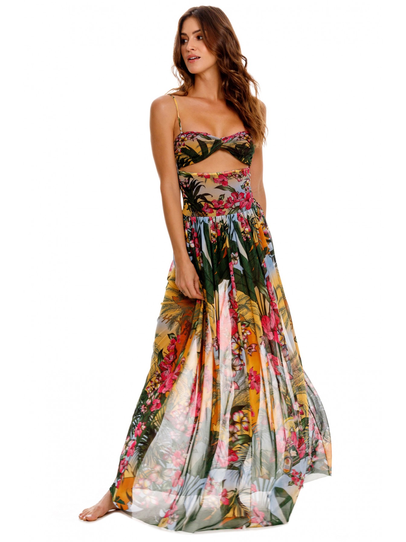 Платье Malay длины макси на тонких бретелях. Бретельки можно отстегнуть. В области груди фигурный вырез. Идеальный образ для пляжного отдыха или прогулки.