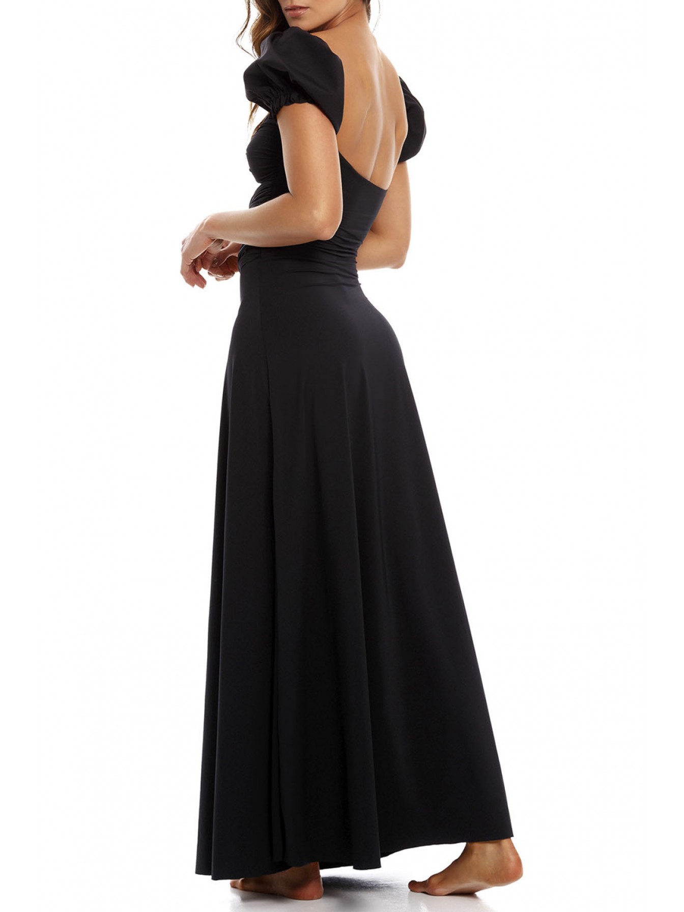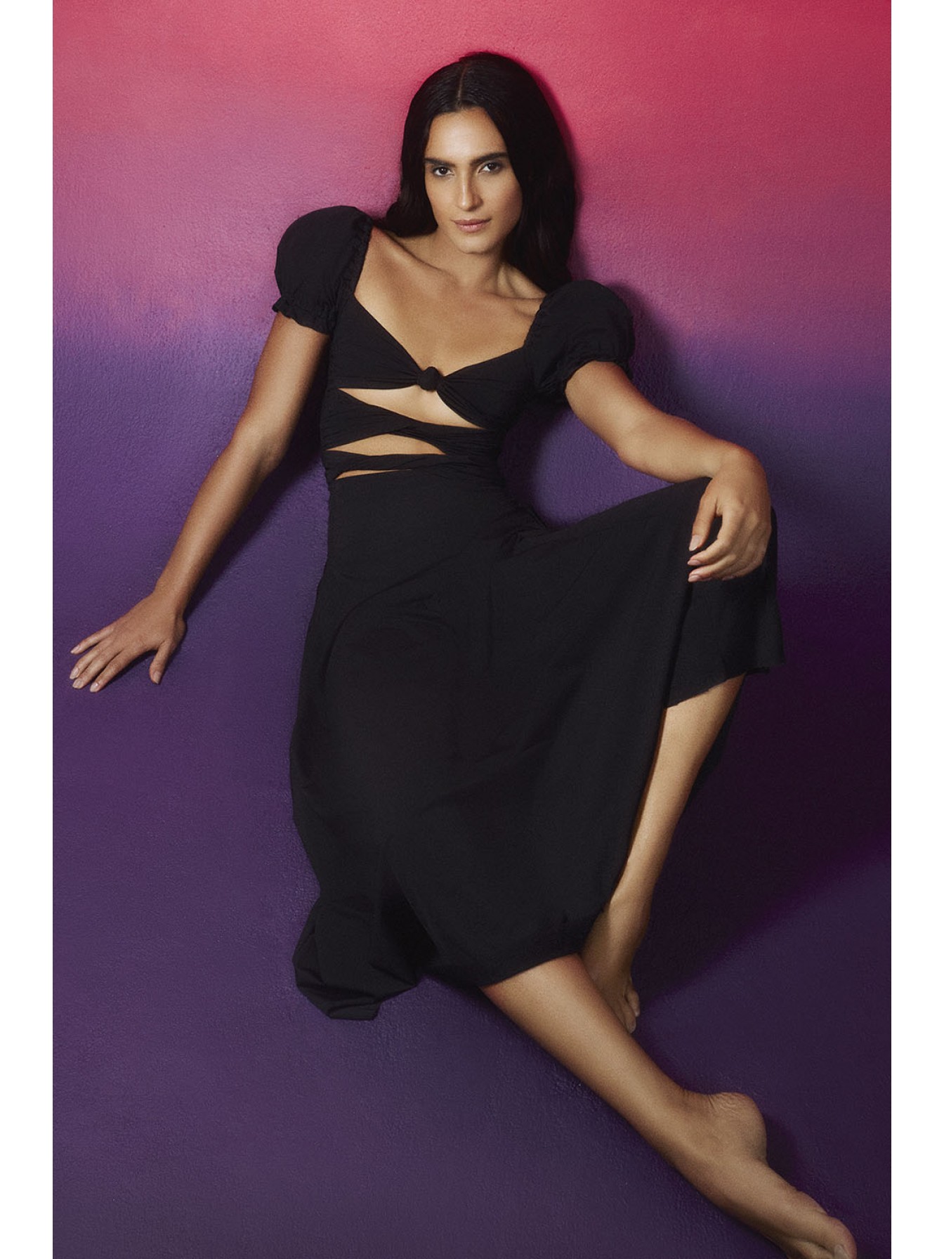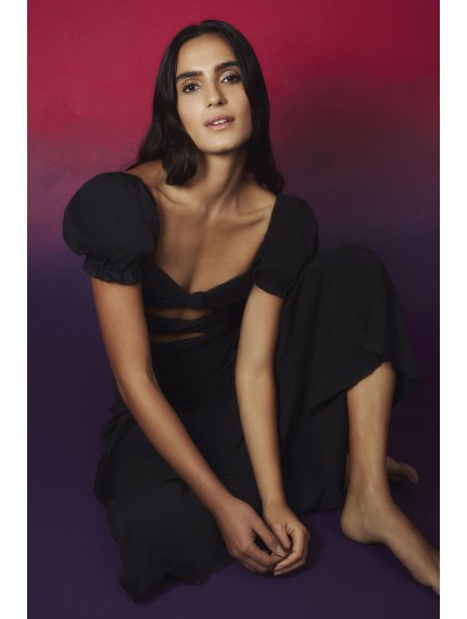 Эксклюзивное платье с вырезом, украшенным узлом спереди, и рукавами-фонариками.