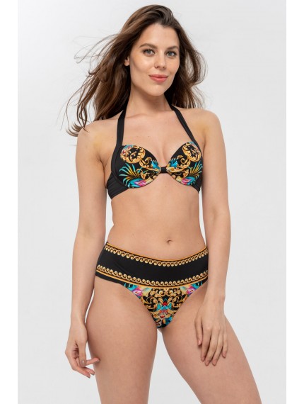 Плавки-слипы с высокой посадкой и широким бочком из коллекции Cruise Party, спереди оформлены оригинальным принтом, сзади черного цвета. Сочетайте с любым верхом этой же коллекции для создания яркого пляжного образа.