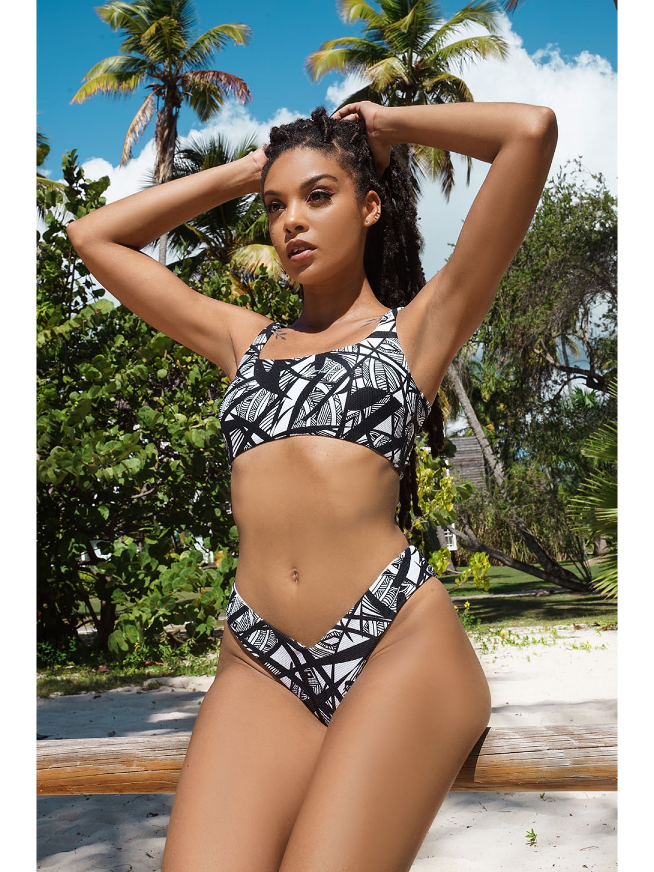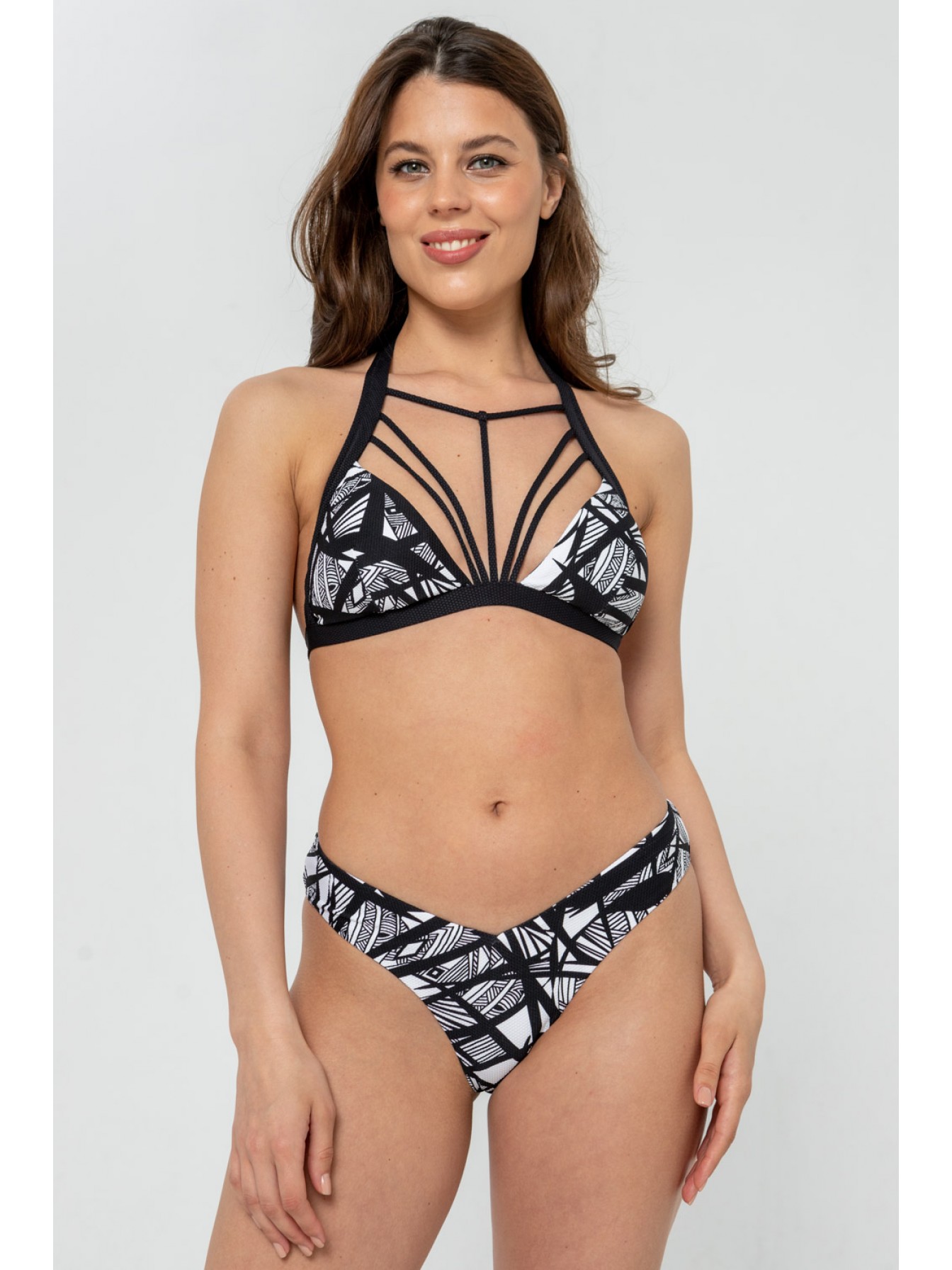 Плавки-галочки из коллекции Graphical Mood c графическим принтом. Сочетайте с любым верхом этой же коллекции для создания яркого пляжного образа.