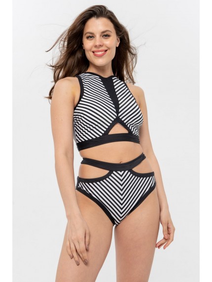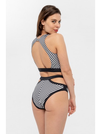 Плавки-слипы макси в черно белую полоску из коллекции Spicy Stripes с оригинальными вырезами по бокам. Сочетайте с любым верхом этой же коллекции для создания яркого пляжного образа.