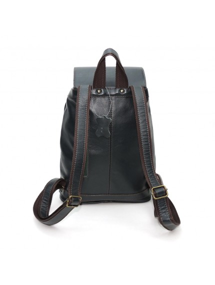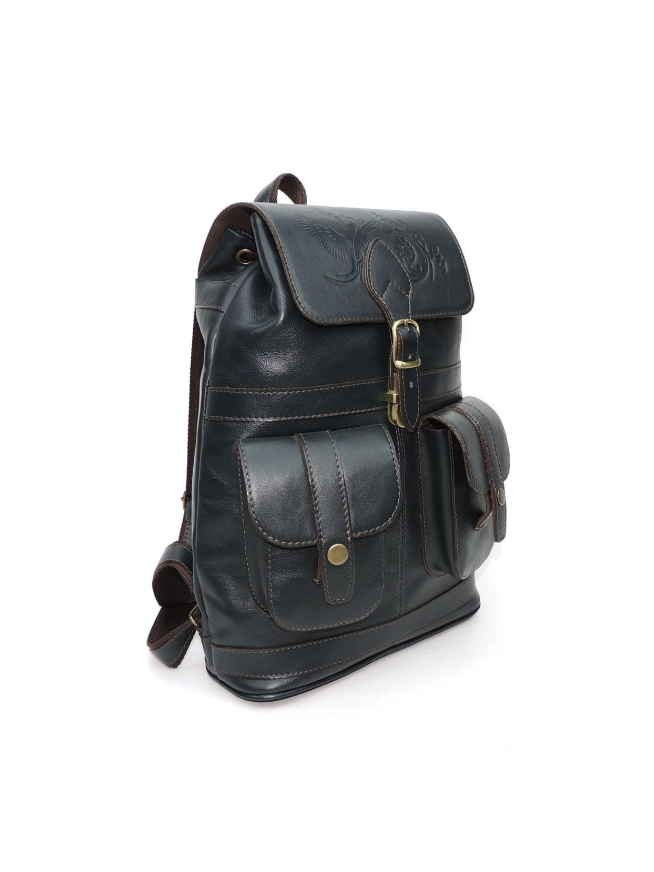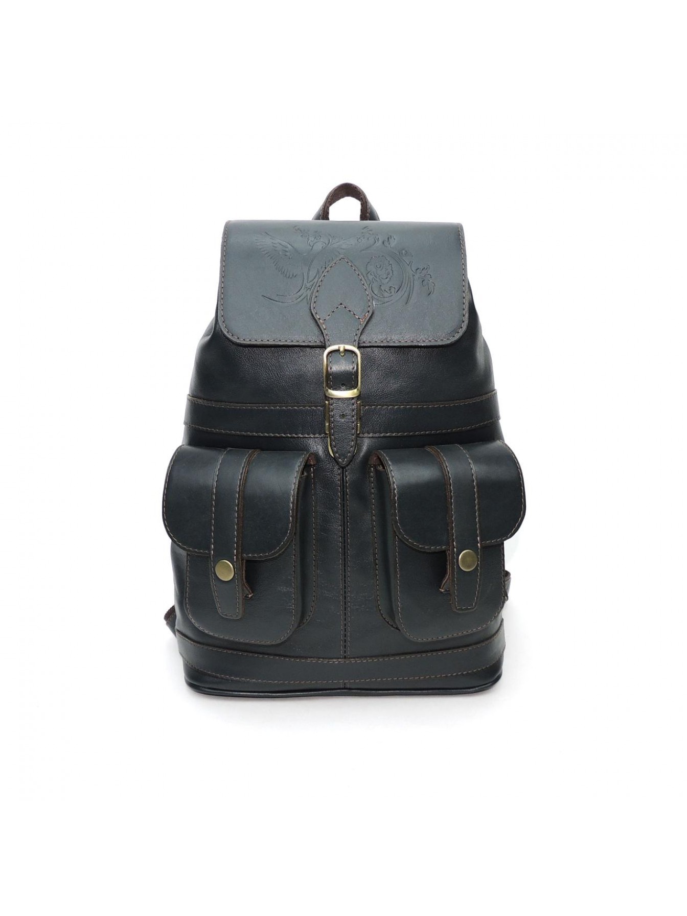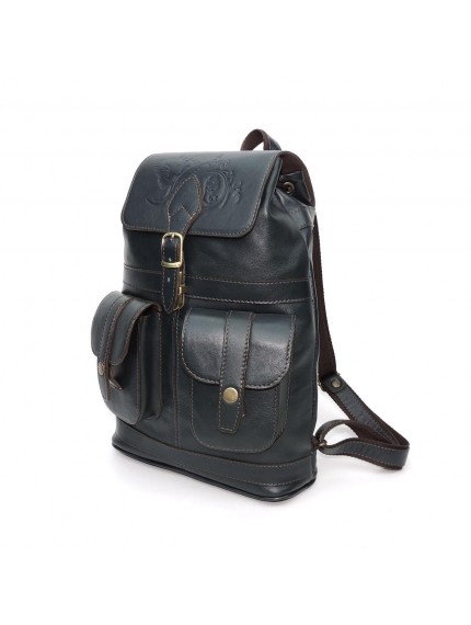 Женский элегантный рюкзачок «Гринто» выполнен из натуральной кожи красивого темно-зеленого цвета, приятной на ощупь, поэтому каждое прикасание к вещи будет доставлять Вам удовольствие. Детали, участвующие в открывании-закрывании кожаного рюкзака выполнены из более плотной кожи - на них ложится функциональная нагрузка, поэтому важна прочность этих деталей. Украшает кожаный аксессуар рисунок сказочной птицы.Женский кожаный рюкзак «Гринто» отражает дух урбанистической «сasual» моды, столь популярной в последнее время. Его можно носить абсолютно со всем: с брюками, шортами, с юбками, с туникой и легкой курткой. А универсальный красивый и не кричащий темно-зеленый цвет гармонично вольется в Ваш гардероб.Внутри рюкзачка, на подкладке - два кармана – карман на молнии, для нужных в повседневной жизни вещей и карман для телефона.Спереди два функциональных объемных кармана, закрывающихся на кнопки. На спинке так же имеется вертикальный карман на молнии – чтобы не тратя времени на поиски внутри изделия оперативно достать проездной, пропуск, ключи. Лямки кожаного рюкзака не только прошиты прочными нитками, но и максимально укреплены металлической клепкой. Длина лямок регулируется пряжками. Максимальная длина каждой лямки 90 см. Удобно носить рюкзак не только с тонкой одеждой, но так же с объемными зимними куртками – комфортная длина наплечных ремней позволяет это. Затягивается кожаный рюкзак на шнур и закрывается на клавишный замок. В рюкзаке «Гринто» помещается формат А4.