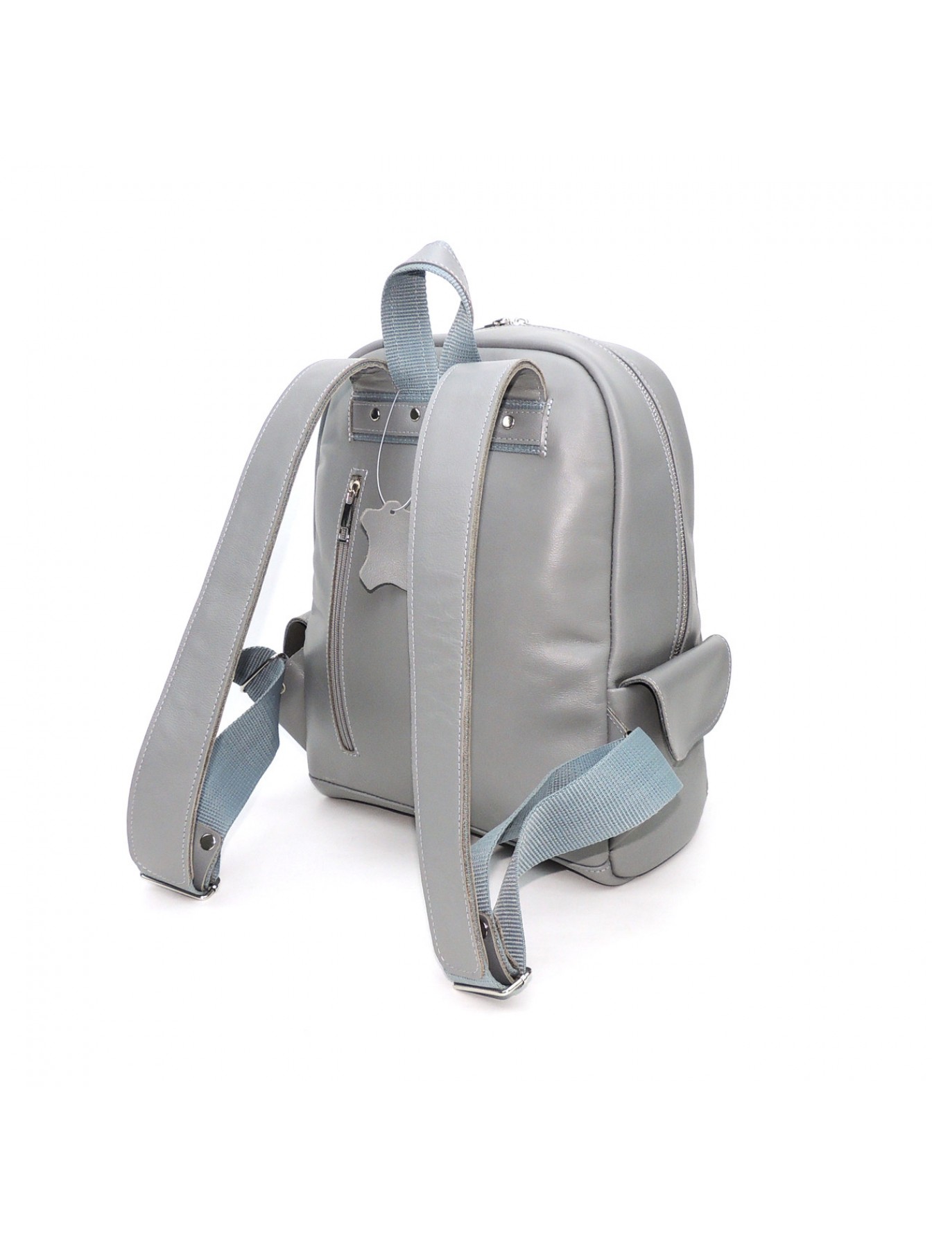 Стильный кожаный рюкзак «Карэн», несомненно, подчеркнет Вашу индивидуальность и будет незаменимым помощником в повседневной жизни.Женский функциональный рюкзак «Карэн» выполнен из плотной гладкой натуральной кожи благородного светло-серого цвета. Кожаный рюкзак легкий (примерно один килограмм) и вместителен – его ширина 11,5 см. Чтобы рюкзак не деформировался при нагрузке - дно жесткое.В рюкзачке помещается формат А4. В кожаном рюкзаке множество карманов. Спереди один большой карман, закрывающийся на молнию и клапан. Еще один карман - под декоративной планкой.Лямки изделия кожаные – комфортные. Длина лямок регулируется пряжками. Максимальная длина каждой лямки 90 см Внутри кожаного рюкзака, на подкладке два кармана разной величины на молнии. На спинке располагается удобный карман на молнии, чтобы быстро достать ключи, проездной. Есть удобные боковые карманы, которые закрываются на магнитные замки и клапан. Закрывается кожаный рюкзак на молнию. Для удобства закрывания предусмотрены два замочка, закрывающиеся на встречу друг другу.