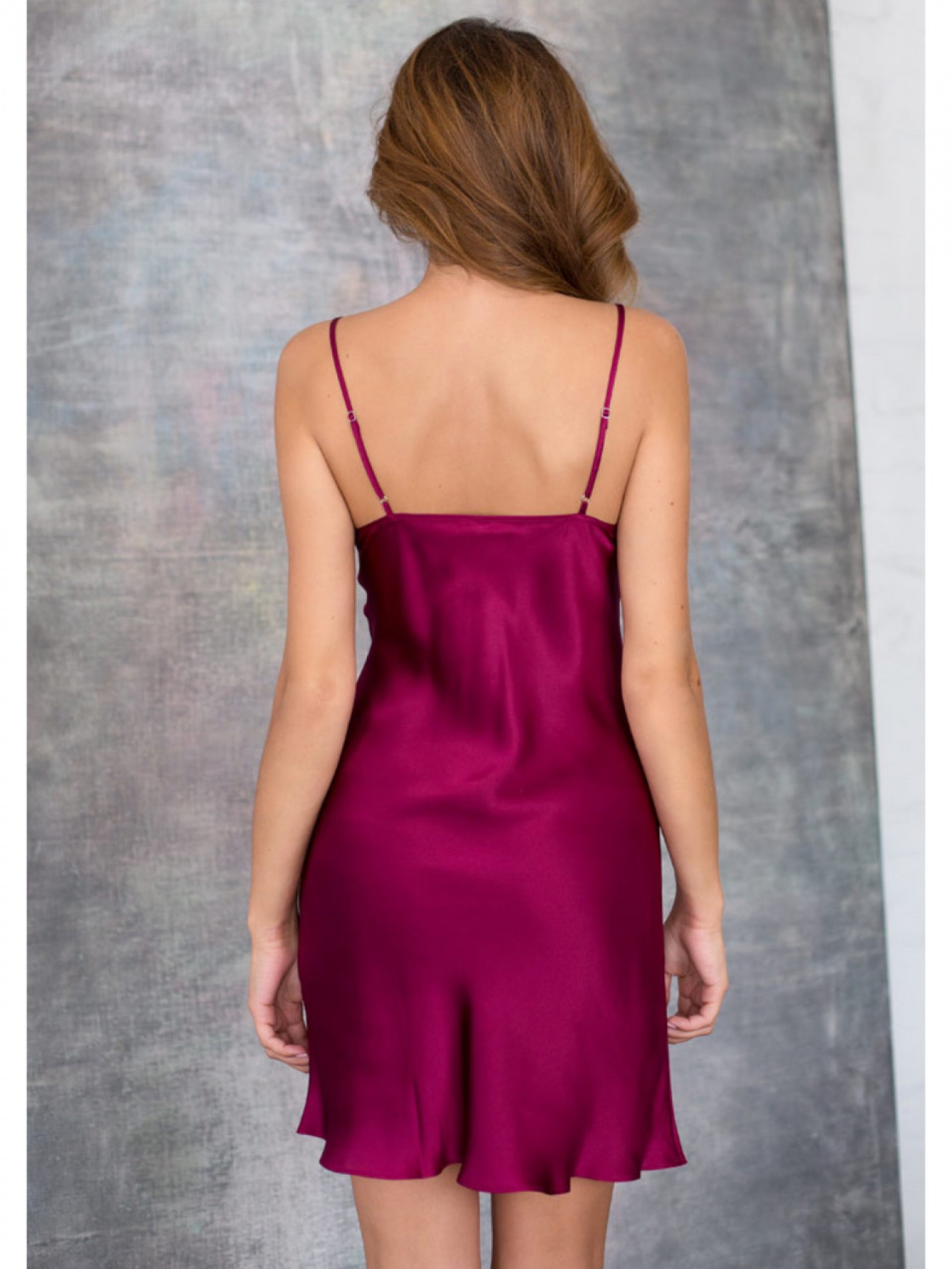 Сорочка полуприлегающего силуэта из однотонного натурального шелка, на тонких регулируемых бретелях. Изюминкой данной модели является драпировка по лифу. Глянцевая сторона шелка придают модели женственность.